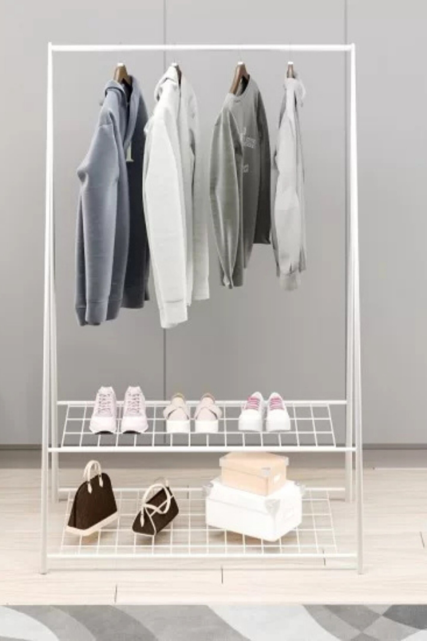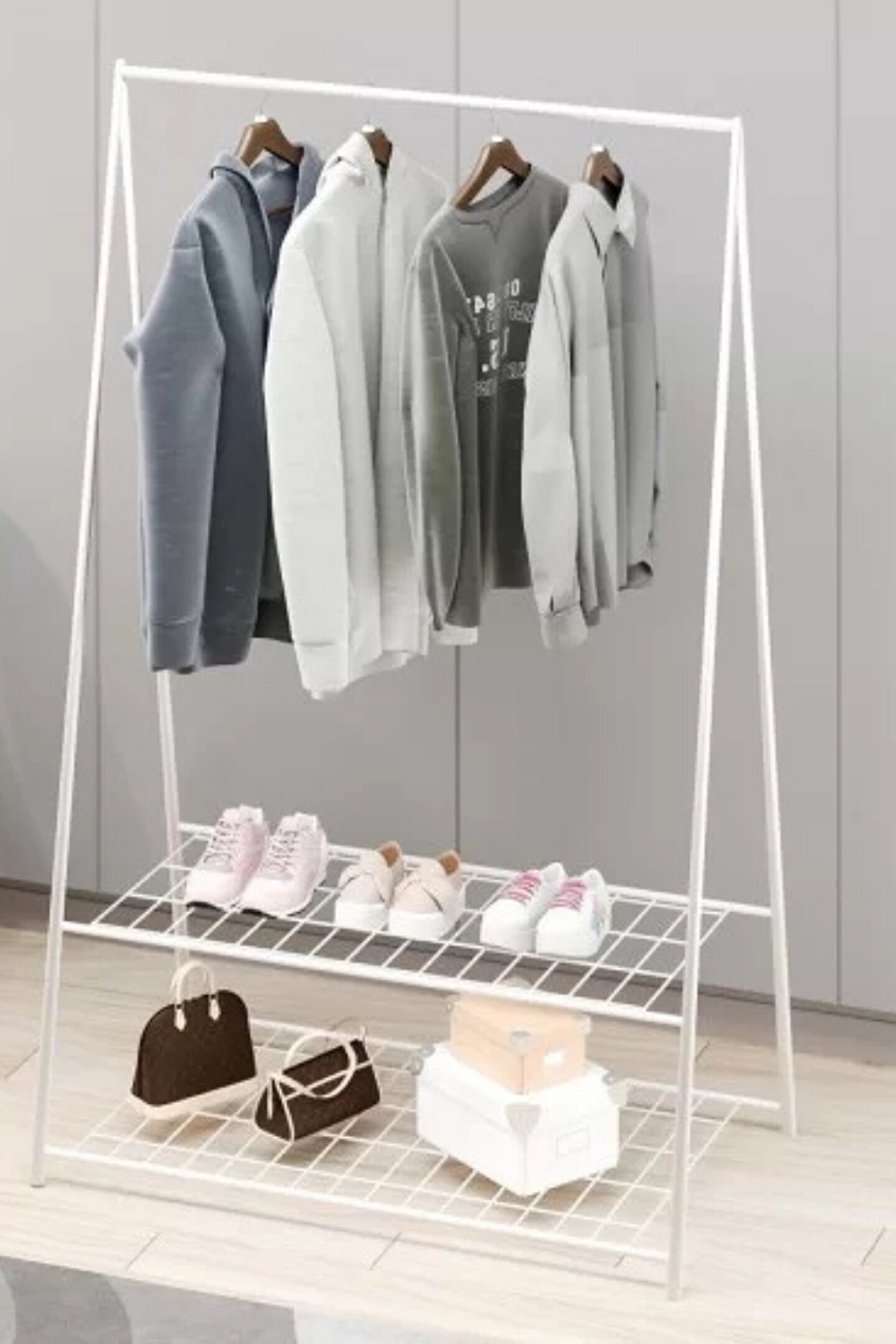 Ayaklı tasarımı sayesinde yerden tasarruf sağlar ve kolayca hareket ettirilebilir; 2 rafı ile geniş kullanım alanı sunar, kıyafetlerinizi düzenli bir şekilde saklamanızı sağlar; Ahşap malzemesi ile dayanıklılık ve uzun ömürlü kullanım vaat eder; 148 x 66 cm boyutlarındaki geniş yüzeyi, farklı türdeki giysileriniz için ideal saklama alanı sunar;