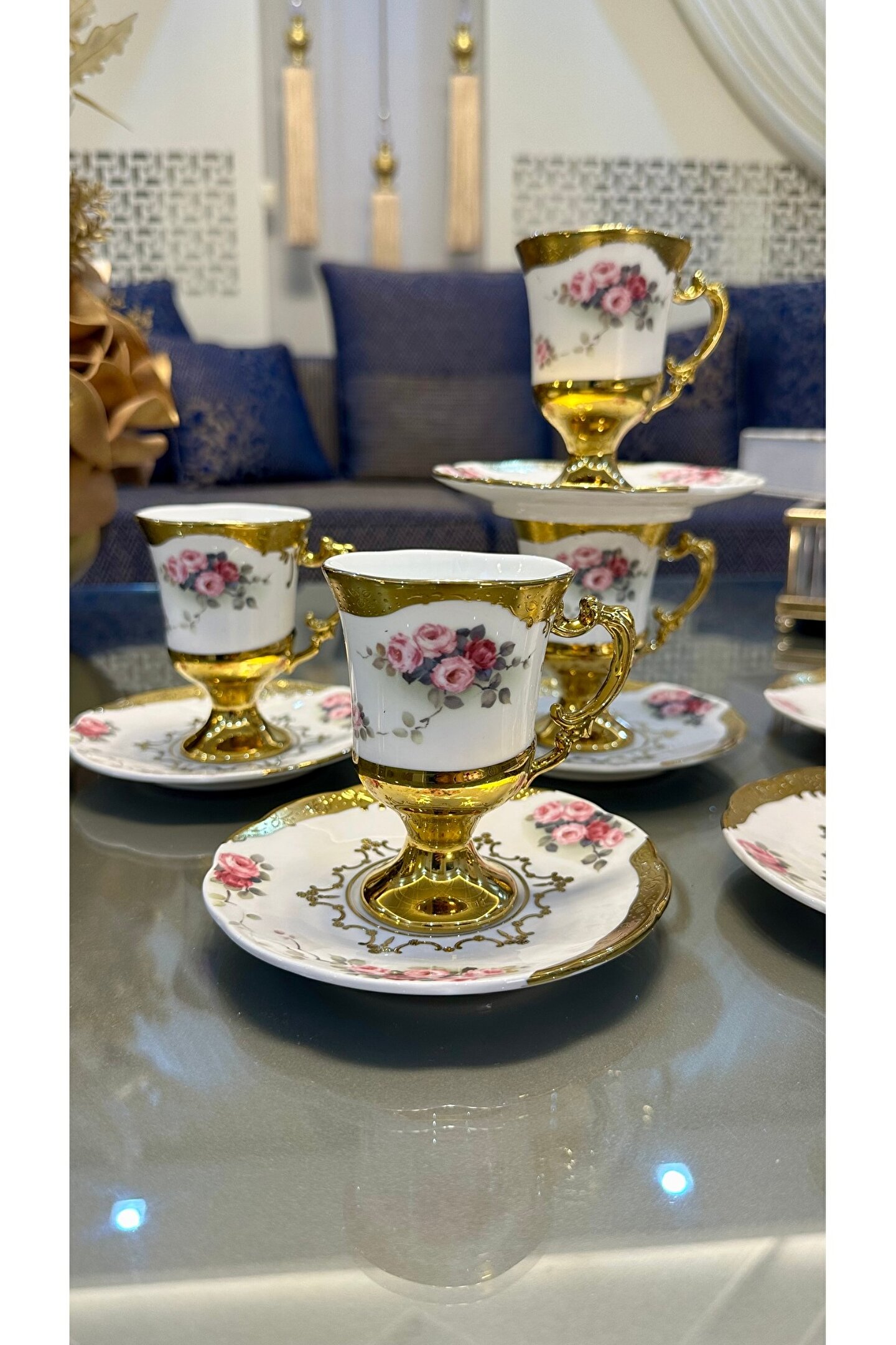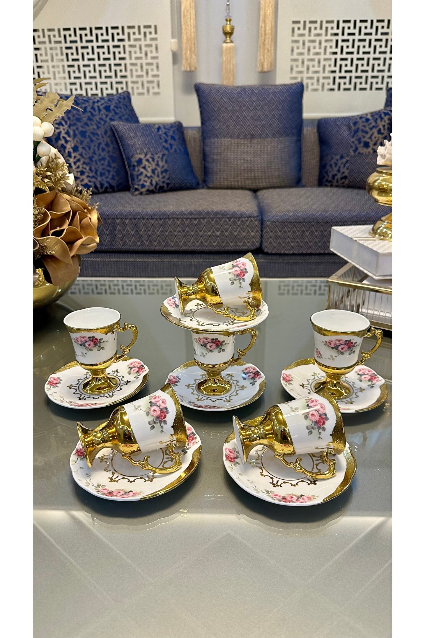 6 Kişilik 12 Parça Ayaklı Gold Güllü 1.Kalite Kahve Sunumlarınıza Şıklık Katacak Kahve Fincan Takımı Uzun Ömürlü Olması İçin Elde Yıkamayı Tavsiye Ediyoruz