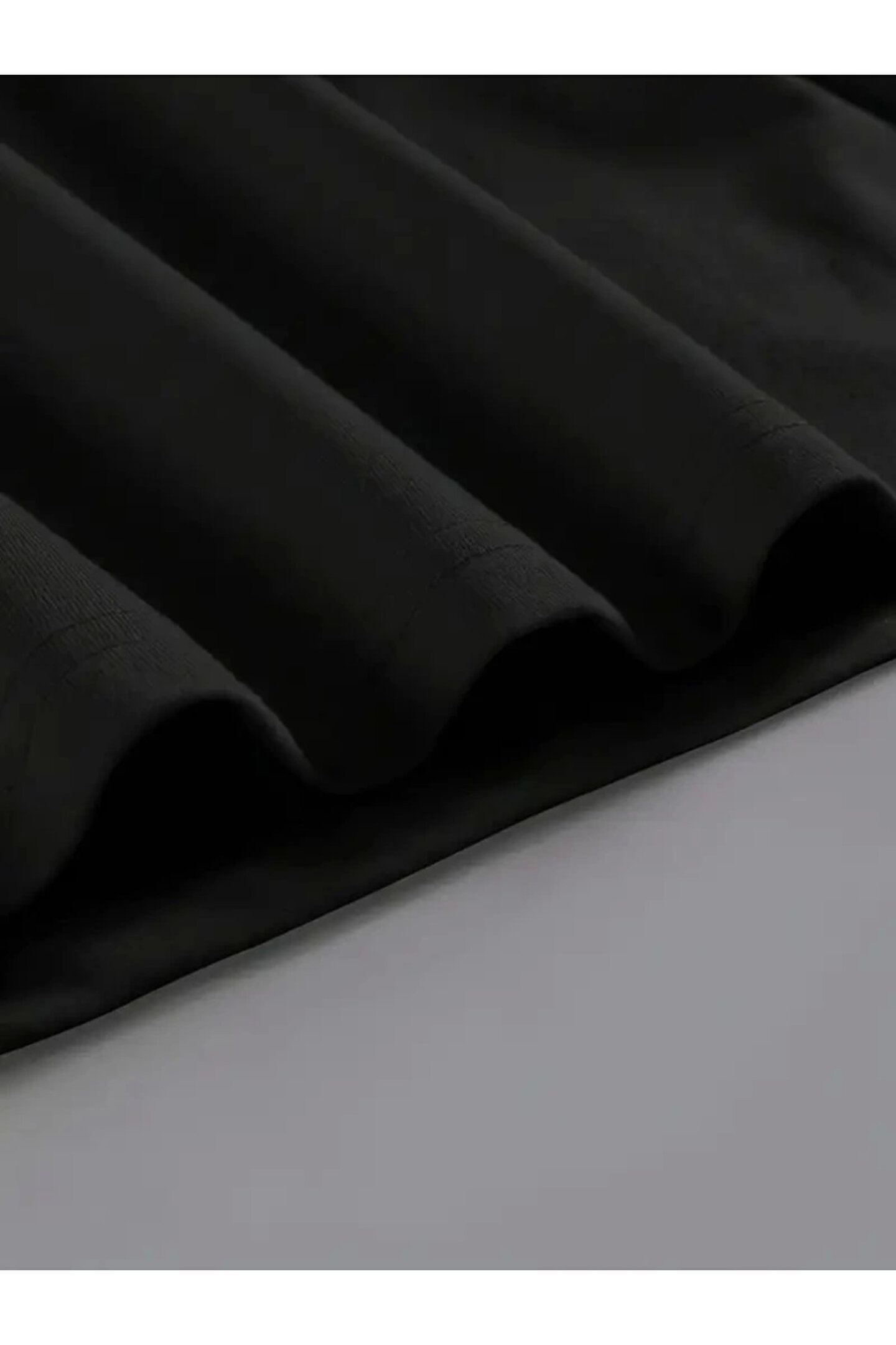 Dua Giyim Baskılı Oversize Bisiklet Yaka T-shirt - Siyah