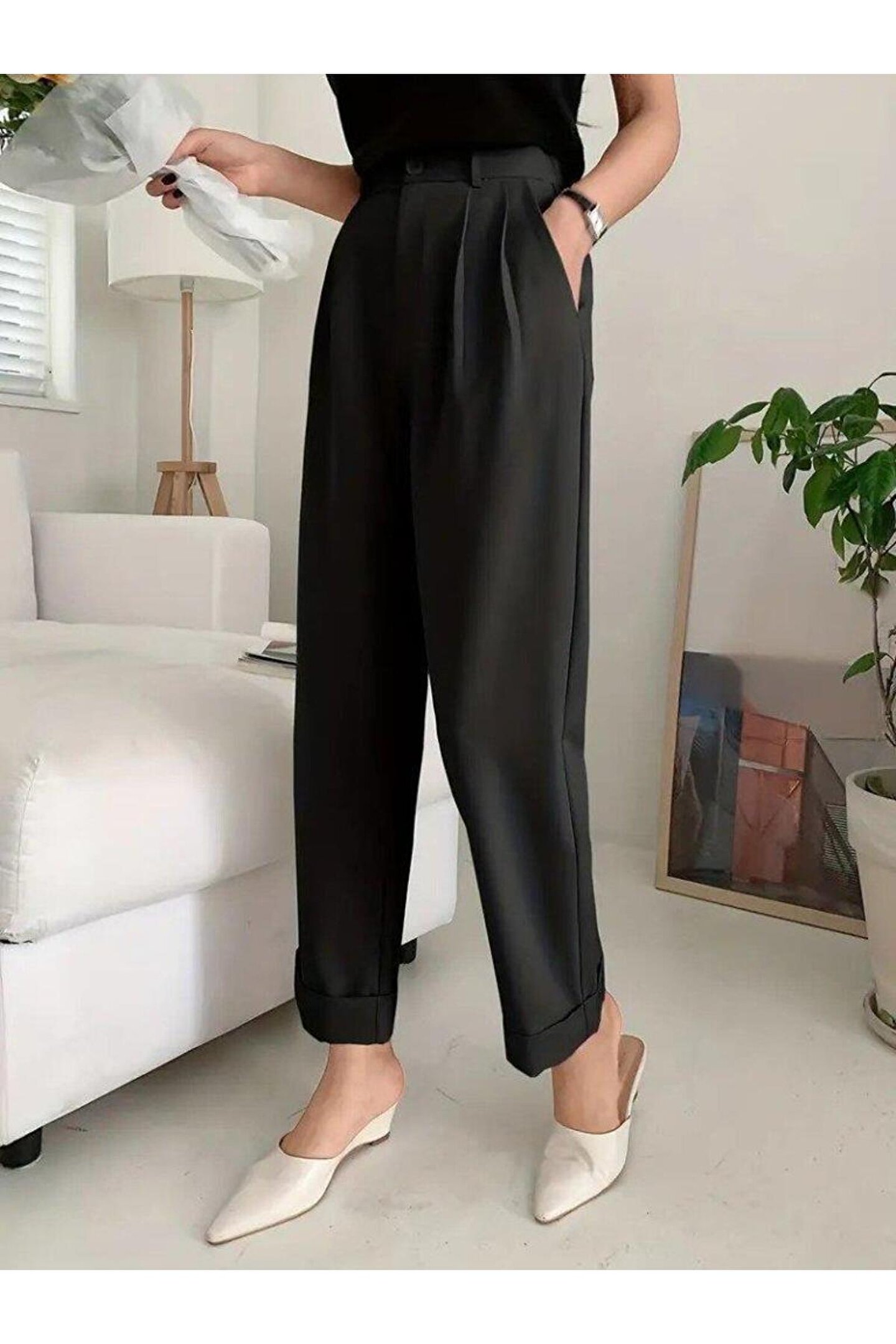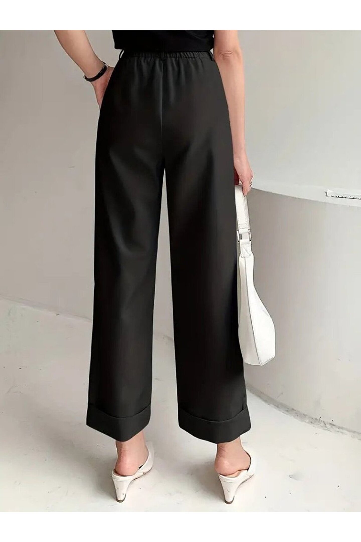 Kadın Yüksek Bel Cepli Atlas Pantolon
