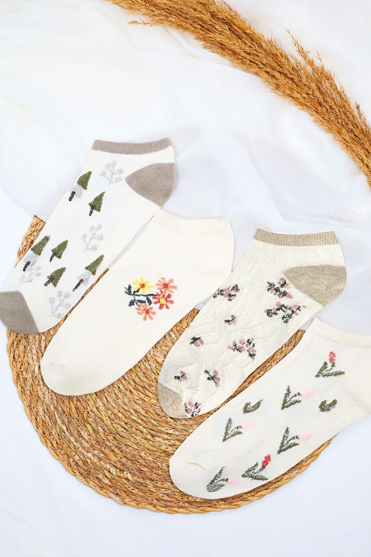 4 Çift Kadın Çorap (Trend) Desenli Kısa Patik Çorap Yeni Sezon
