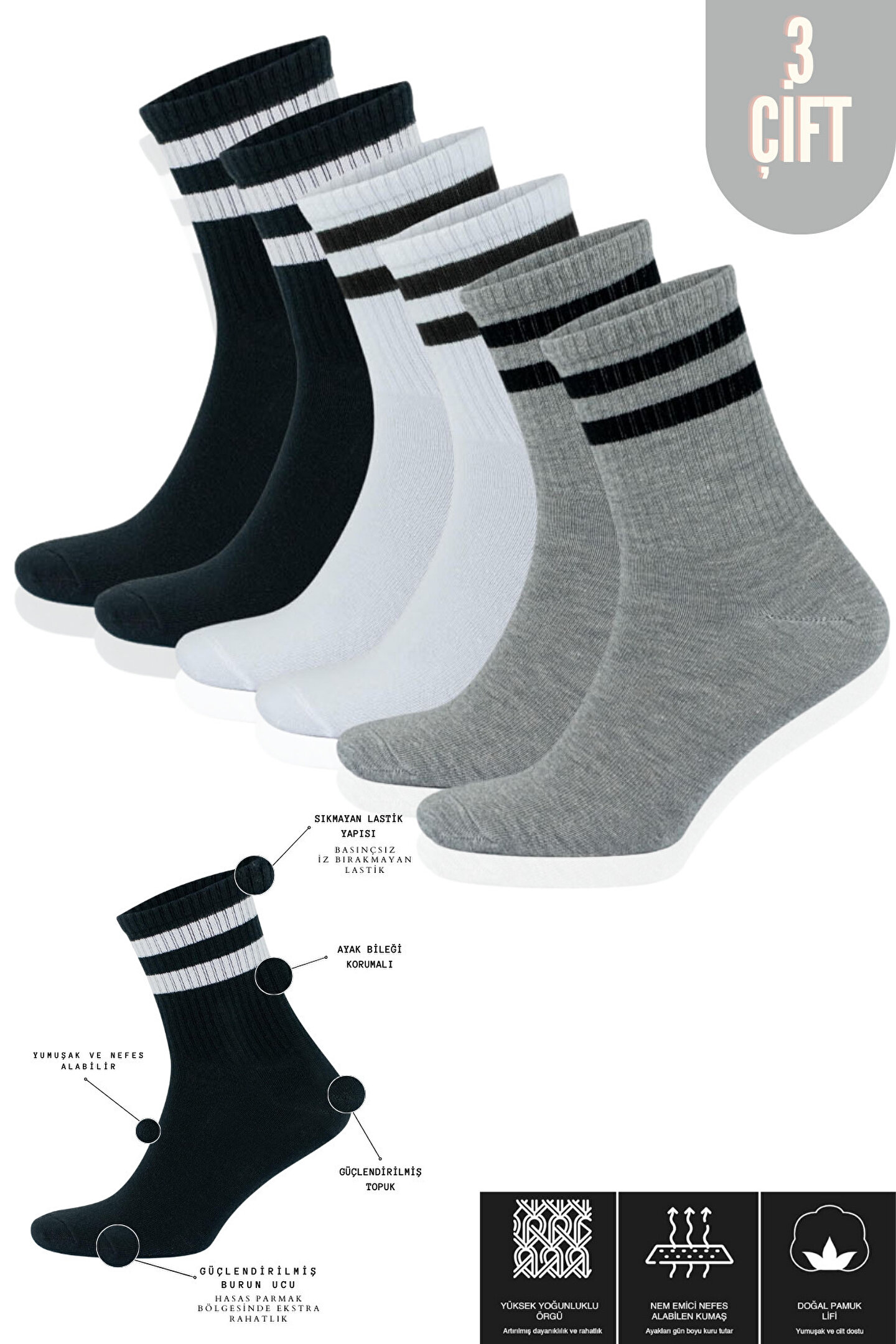Erkek Kadın (12 ÇİFT) Çizgili Kolej Tenis Çorabı Pamuklu Terletmez Çorap
