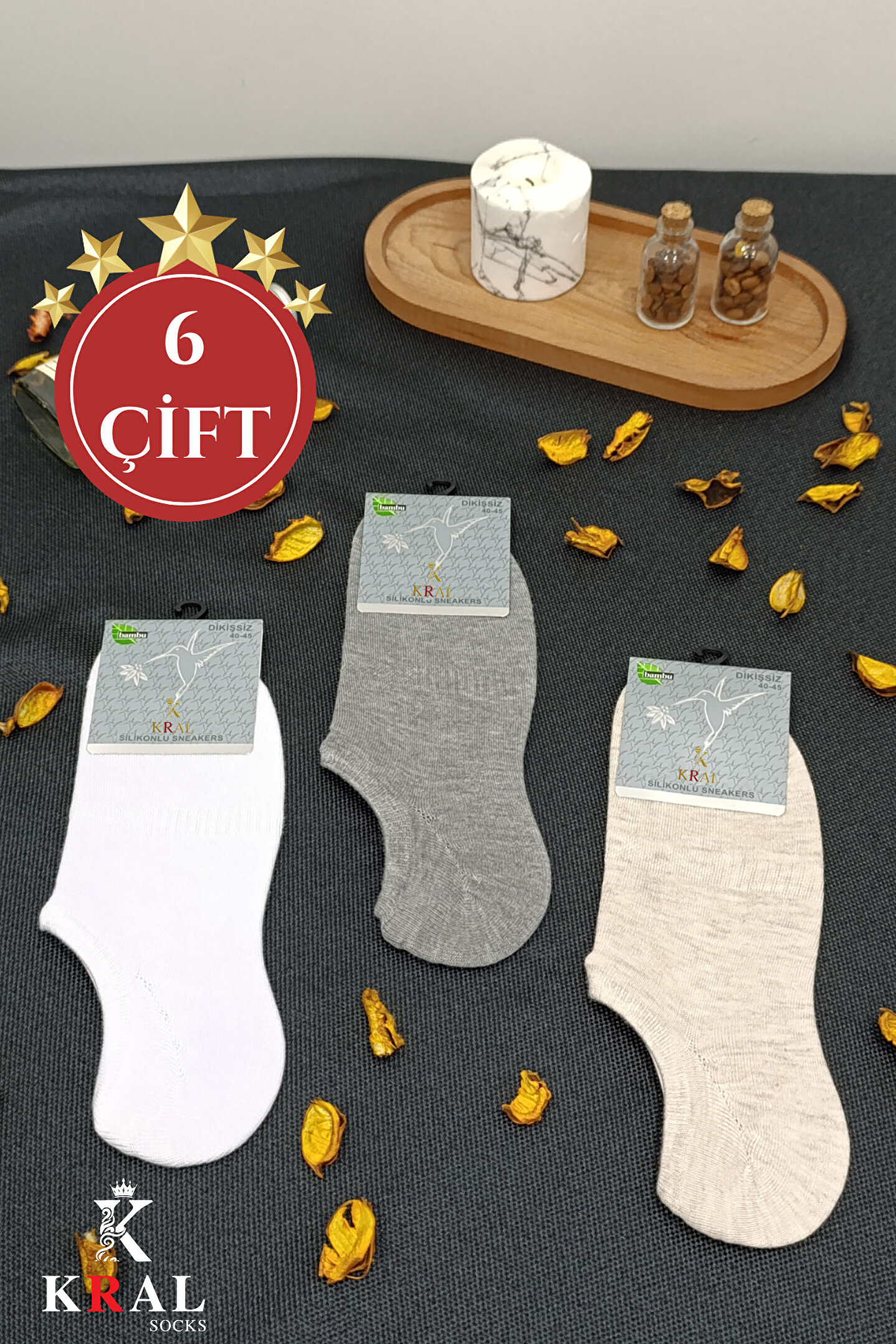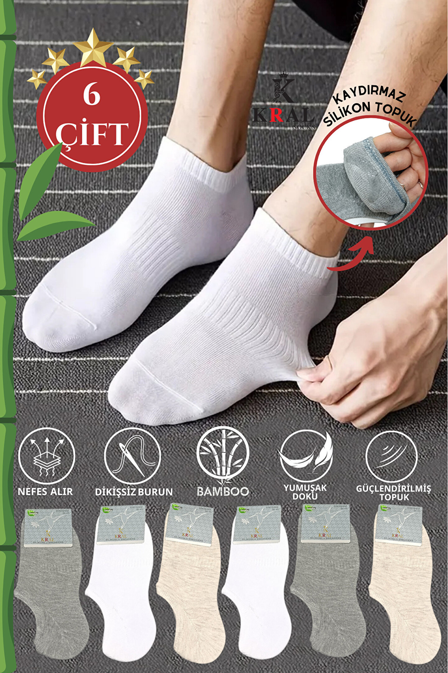 Erkek Snikers (6 ÇİFT) Bambu Dikişsiz Hassas Dokuma Terletmez Bambu Çorap