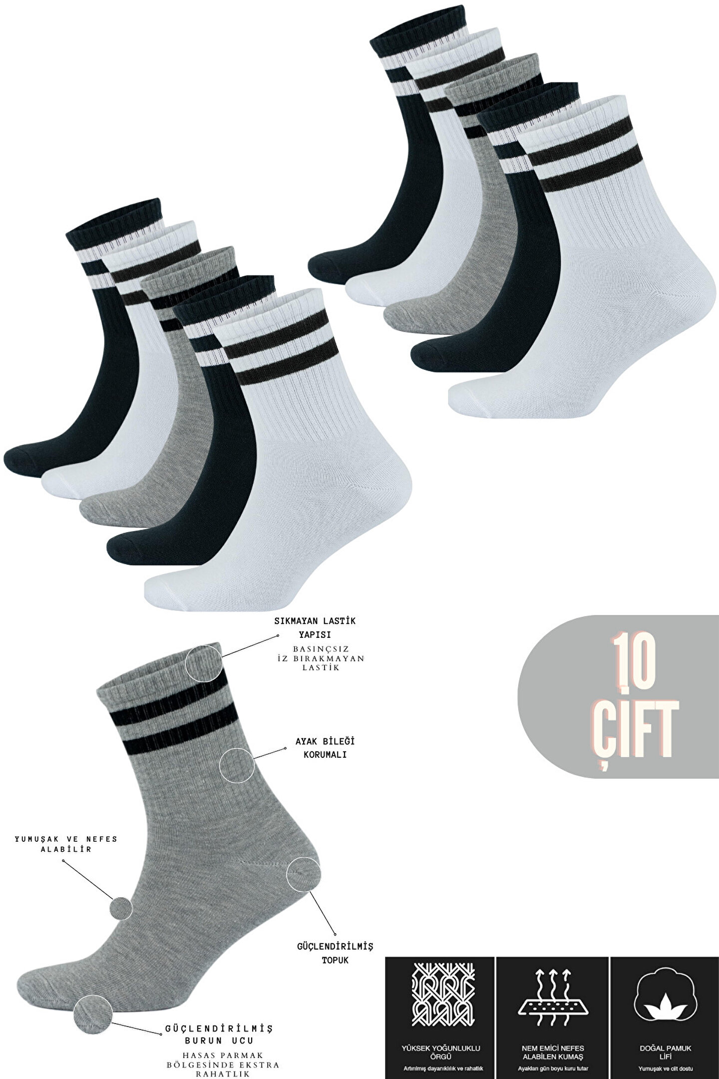 Kadın Erkek Düz Çizgili (10 ÇİFT) Çeyrek Soket Tenis Model Pamuklu Terletmez Çorap Seti