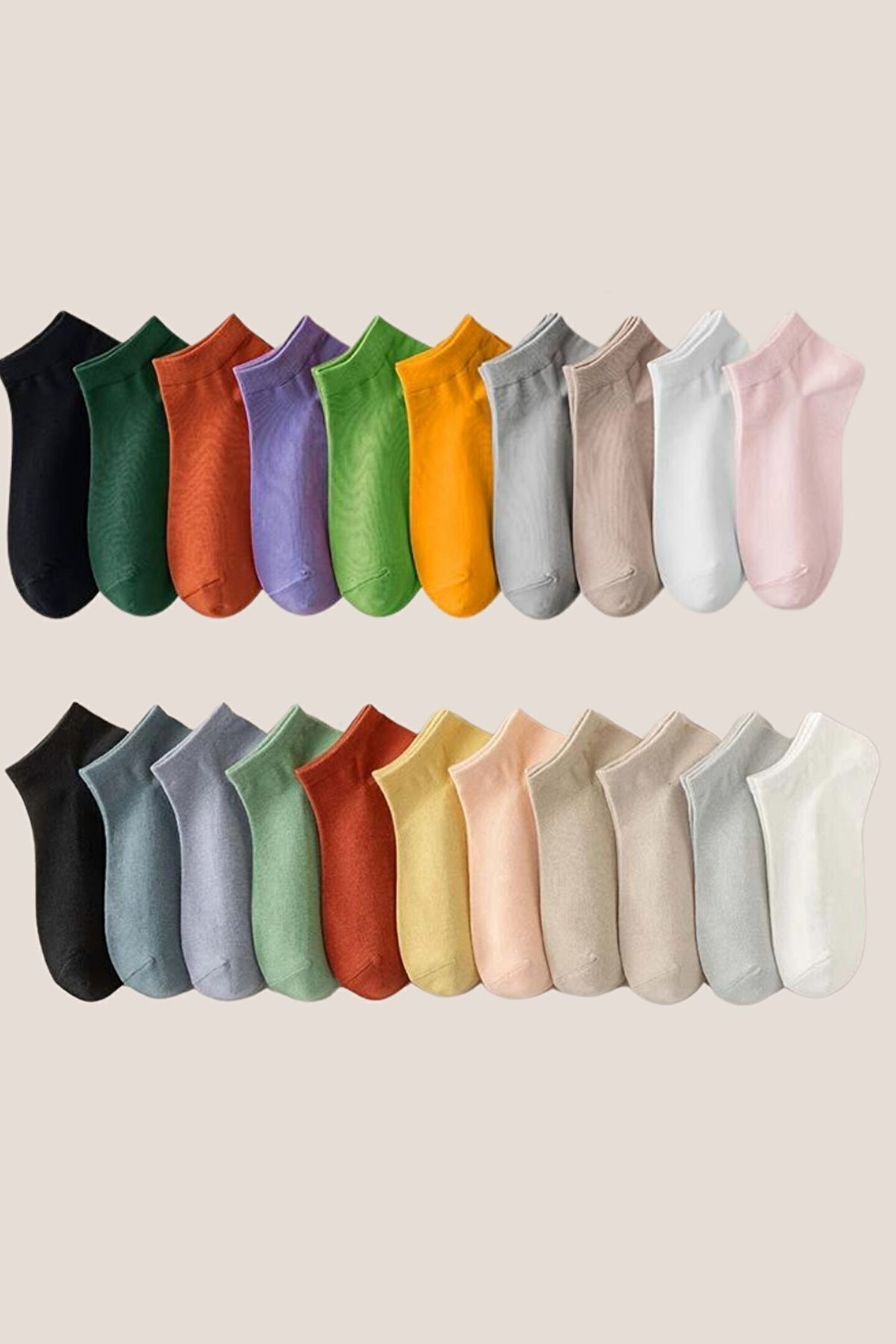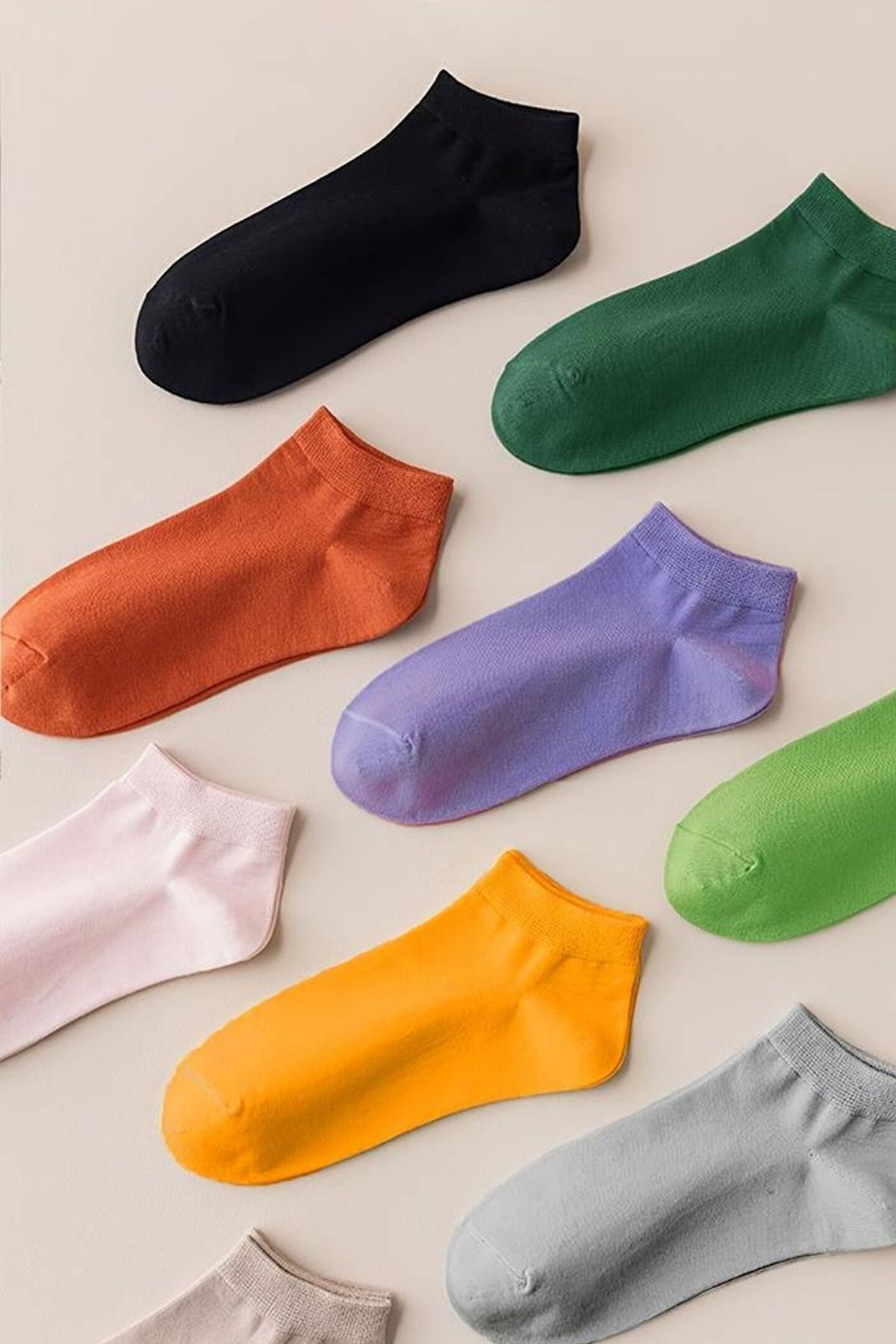 Renkli (10 ÇİFT) Likralı Pamuklu Penye Kadın Patik Çorap
