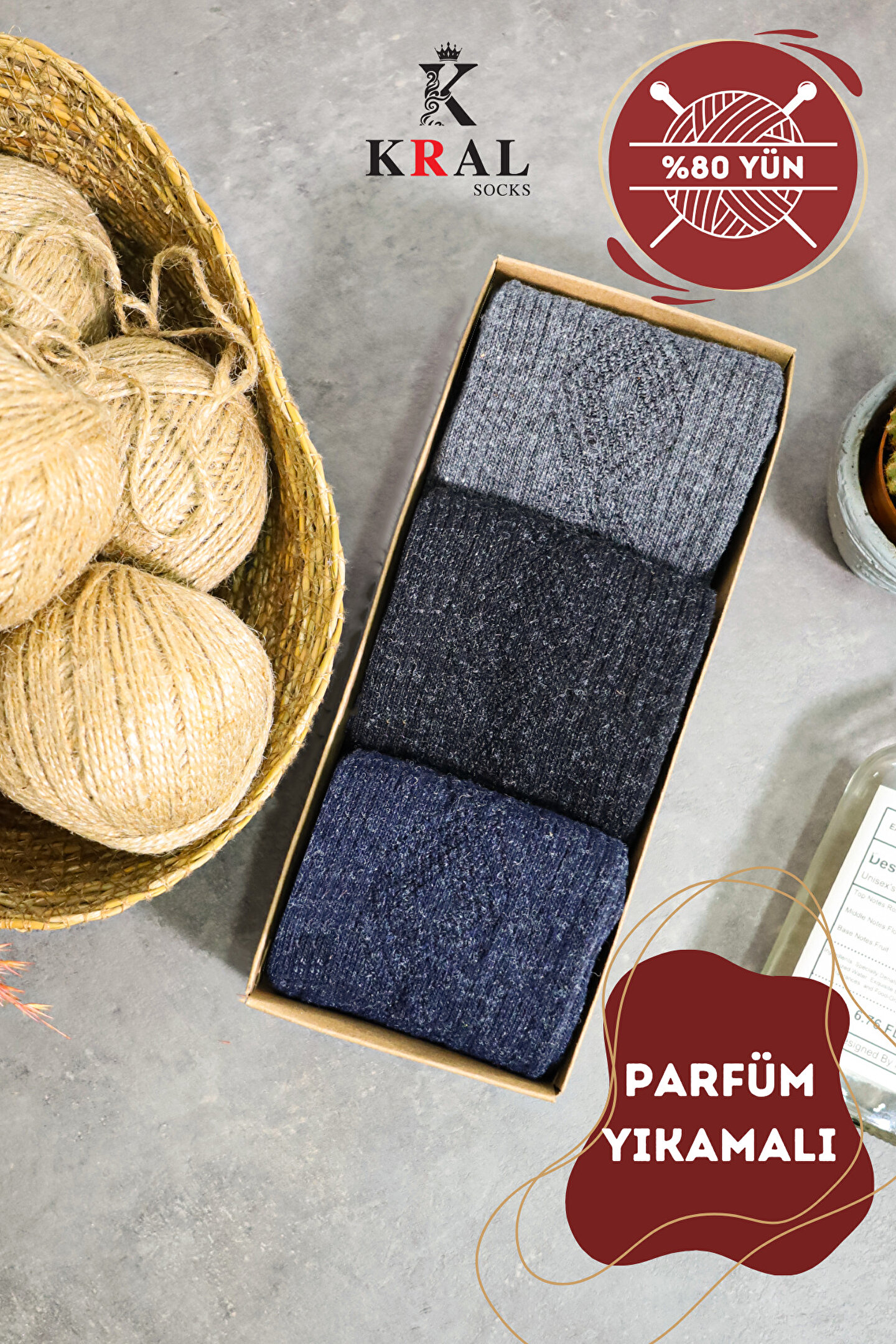 Termal Etkili 3 Çift Kutulu Kışlık Kuzu Yünlü Lambswool Dikişsiz Çorap