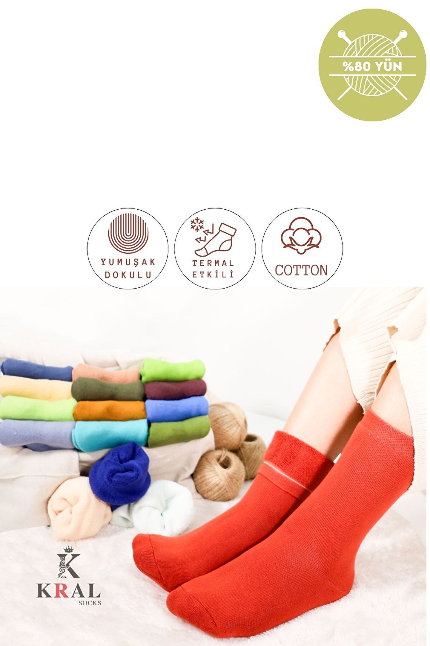 Termal Özellikli 2x Korumalı (3 ÇİFT) Kadın Soft Renkli Kışlık Yün Havlu Çorap
