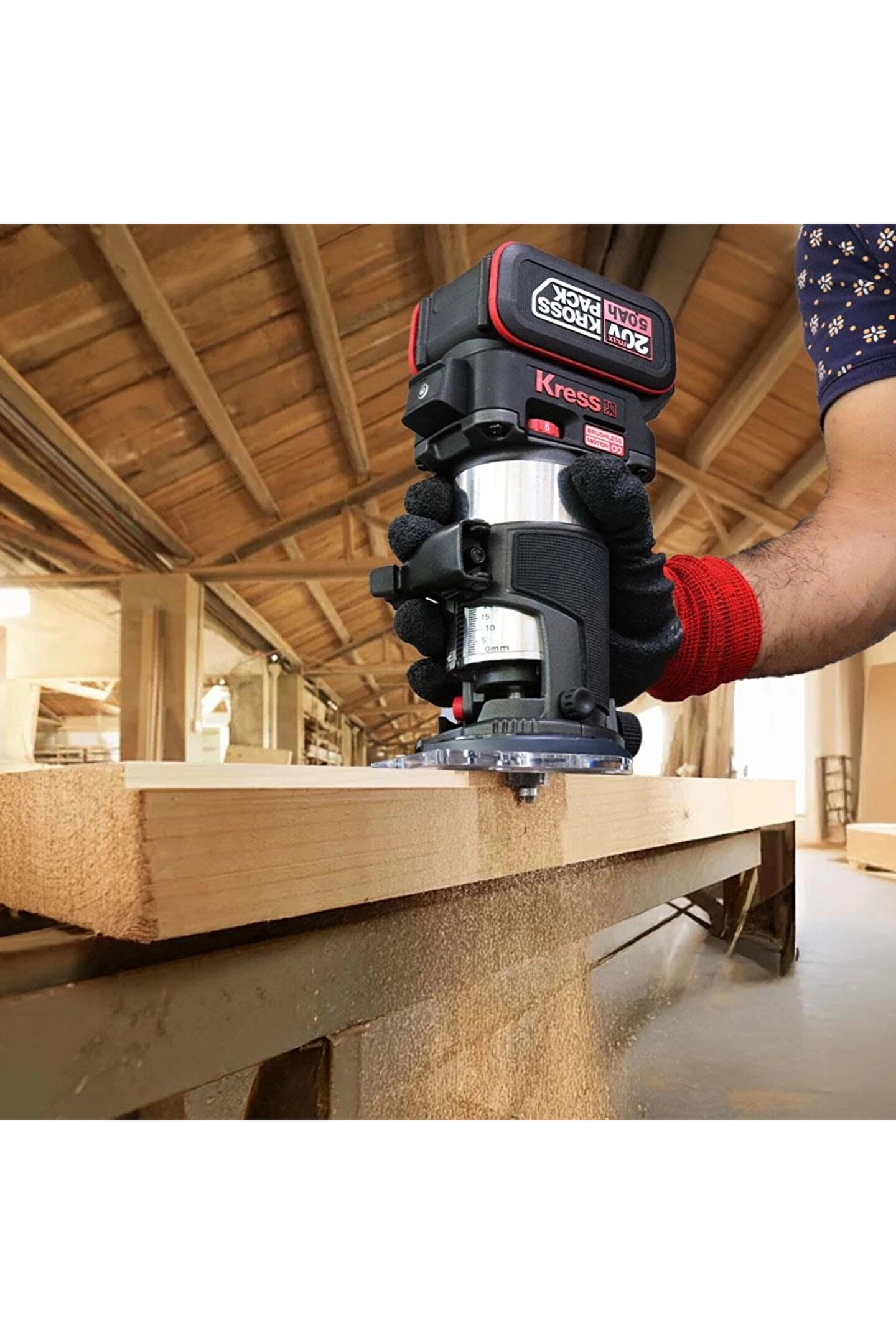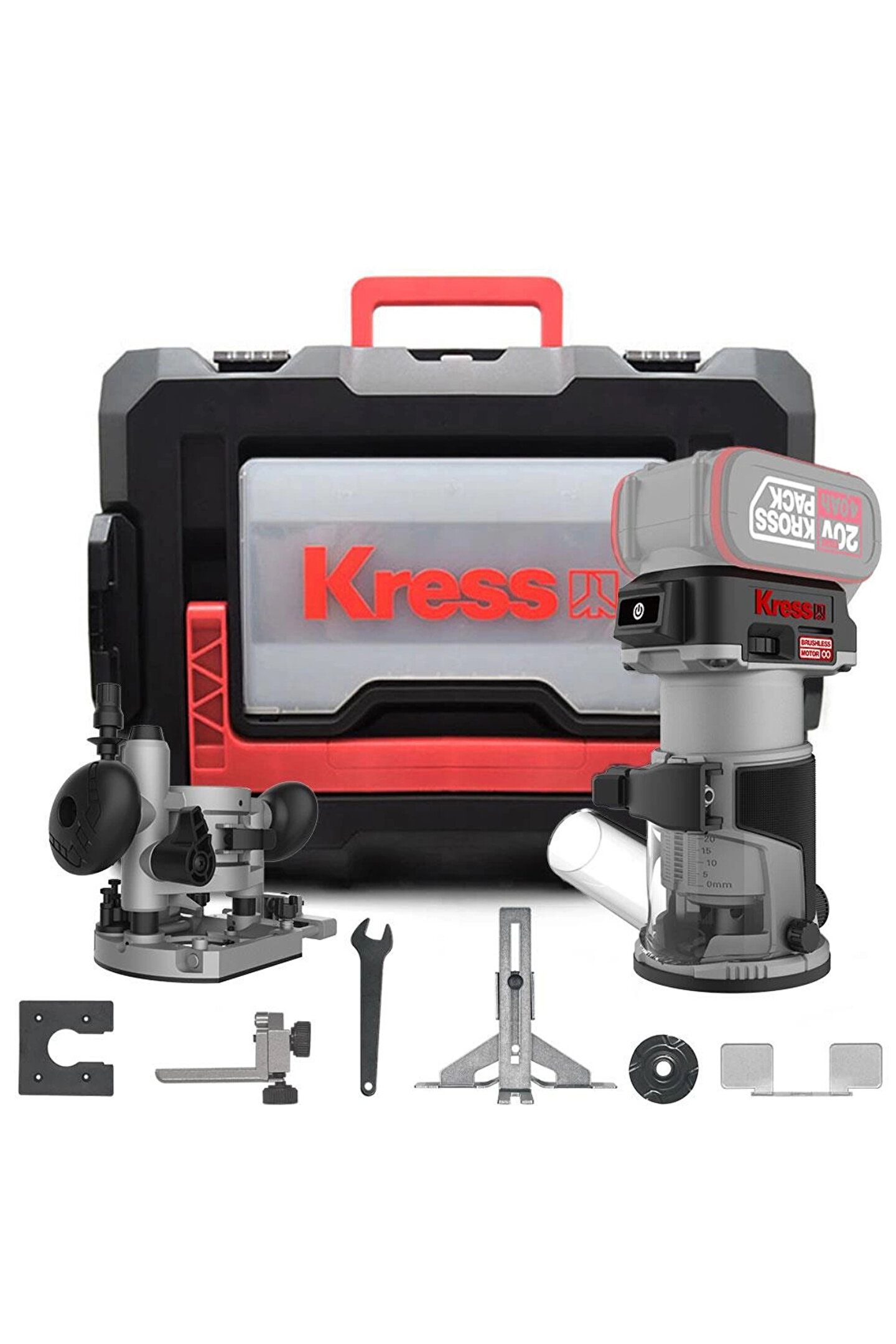 • Kress KUD26.91 20Volt Kömürsüz 6/8mm Devir Ayarlı Şarjlı Profesyonel Avuç İçi El Frezesi Formika Tıraşlama (Akü Dahil Değildir)