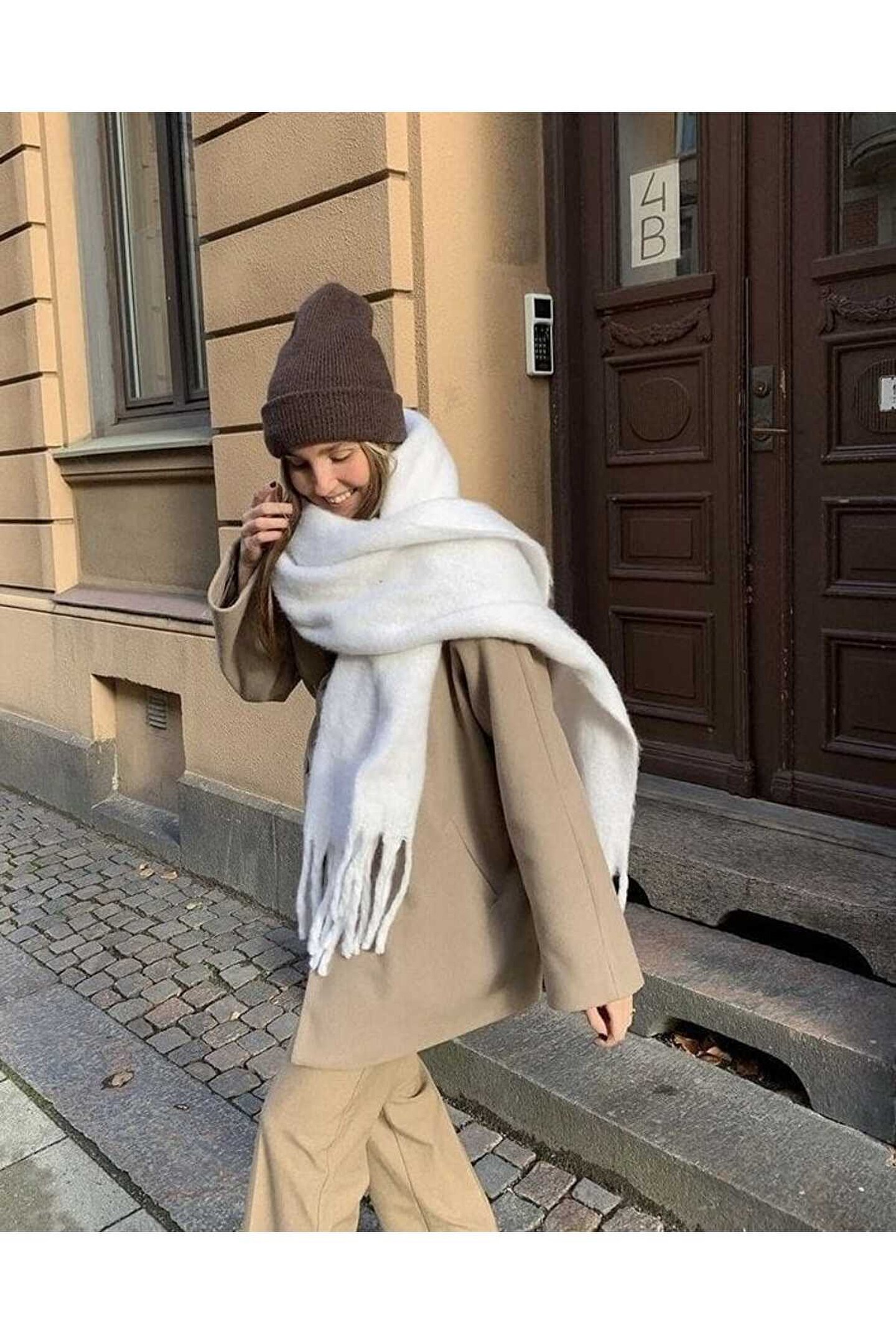 La Florine Puffy Yumuşak Dokulu Soft Atkı Omuz Şalı Ekru