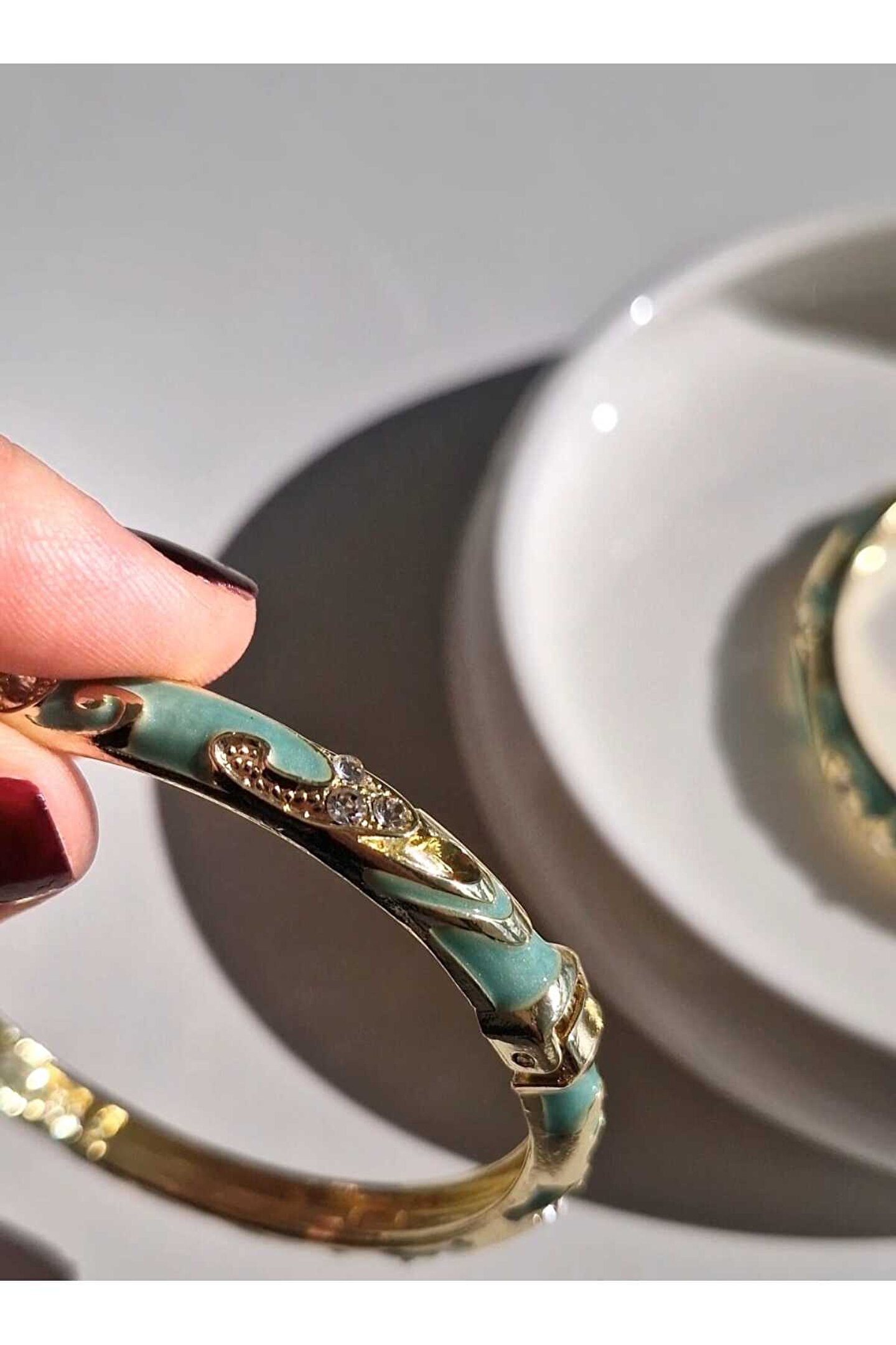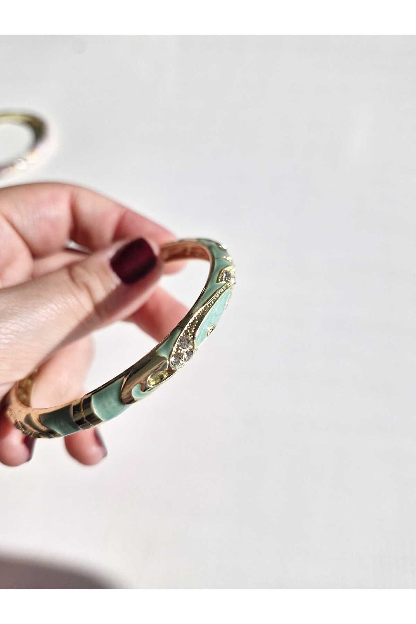 Özel işçilikle hazırlanmış yeşil mine detayı tasarıma modern bir görünüm kazandırır.; Üzerindeki parlak zirkon taşlar, bilekliğe göz alıcı ışıltı ve lüks bir duruş katar.; Kolayca takılıp çıkarılabilir kelepçe modeli, bileği zarifçe kavrar.; Diğer altın veya çelik aksesuarlarla mükemmel uyum sağlayarak koleksiyonunuzun en göz alıcı üyesi olur.; Belirtilen fiyat bir adet ürün için geçerlidir.; Görseldeki kombin örnek amaçlıdır.;