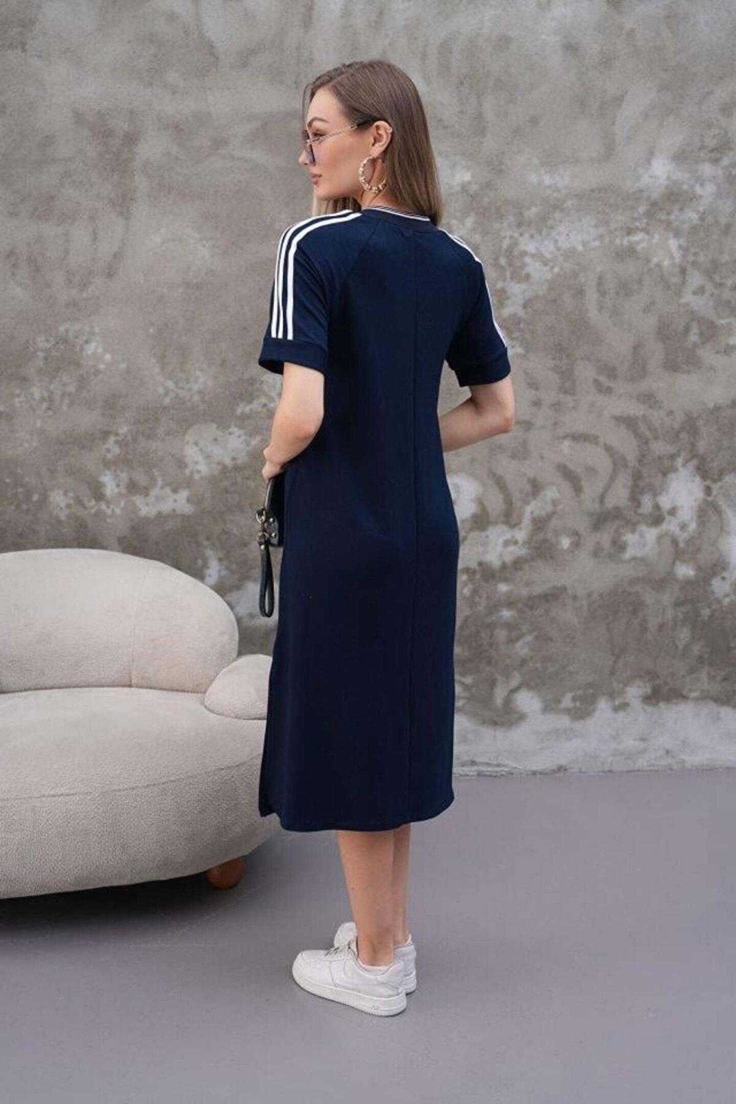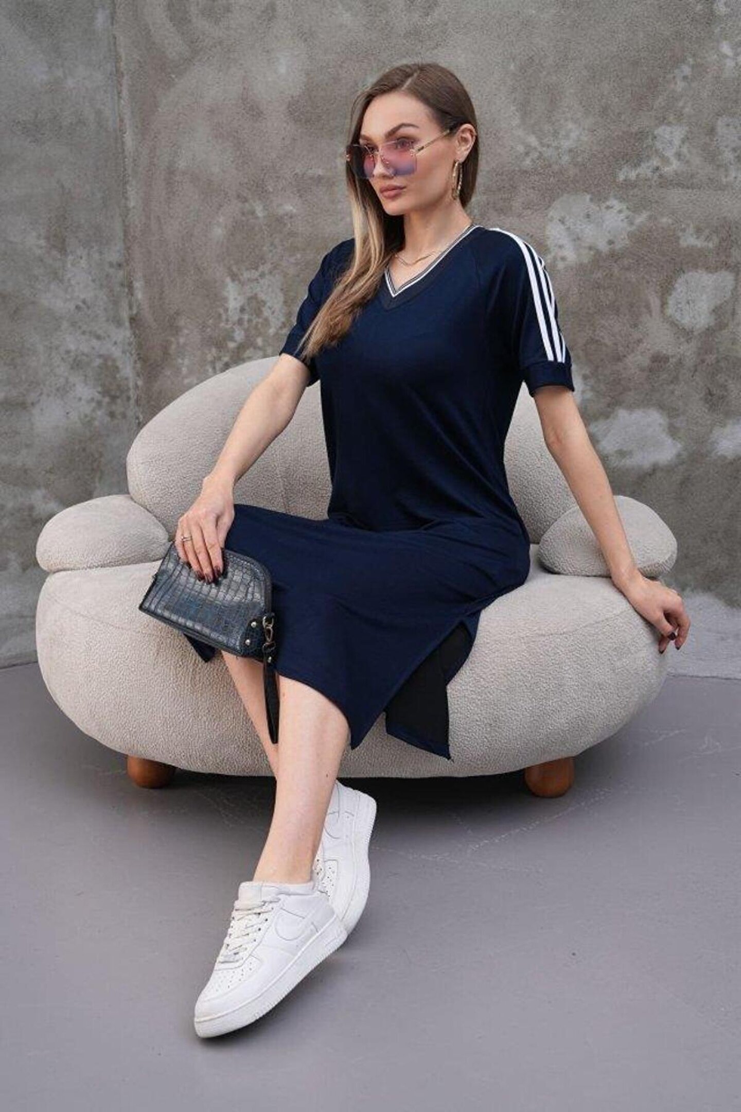 Modelin Ölçüleri: Boy:165, Kg:55, Göğüs:90, Bel:72, Kalça: 100 Modelin üzerindeki ürün M/38 bedendir Trendleri belirleyen kadın giyim markası velmorafashion'a hoşgeldiniz! VelmoraFashion, kadınların tarzlarını ifade etmelerine ve güçlü bir duruş sergilemelerine olanak tanıyan bir markadır.; 2018 yılından bu yana sektörde varlığını sürdüren firmamız, yenilikçi tasarımları ve kaliteli ürünleriyle dikkat çekiyor.; VelmoraFashion olarak amacımız, her kadının kendine özgü tarzını yansıtabileceği, güvenilir ve şık giyim seçenekleri sunmaktır.; Koleksiyonlarımızda her zevke hitap eden parçaları bulabilirsiniz.; Günlük hayatta rahatlıkla tercih edilebilecek şık elbiselerden iş görüşmelerinde stilinizi tamamlayacak takım elbiselere, spor giyimden abiye modellere kadar geniş bir ürün yelpazemiz bulunmaktadır.; Tasarımlarımızı oluştururken moda trendlerini yakından takip ediyor, farklı tarzlara ve bedenlere uygun seçenekler sunmaya özen gösteriyoruz.; Aynı zamanda kalite ve dayanıklılık da önceliklerimiz arasındadır.; Her parça, titizlikle seçilen kumaşlar ve dikkatle işlenen detaylarla özenle üretilmektedir.; Müşteri memnuniyeti bizim için en önemli önceliktir.; Profesyonel müşteri hizmetleri ekibimiz, her adımda size yardımcı olmak ve alışveriş deneyiminizi en üst düzeye çıkarmak için buradadır.; Siz değerli müşterilerimizin geri bildirimleri, bizi daha da ileriye taşımak için önemli bir kaynaktır.; Velmora Fashion olarak, sadece giyimde değil, aynı zamanda kadınların güçlendirilmesi ve kendilerini ifade etmeleri konusunda da bir misyon taşıyoruz.; Her kadının kendi tarzını keşfetmesine ve kendine güvenle adım atmasına yardımcı olmak için buradayız.; VELMORAFAShion'da her detayı düşünülmüş, şıklığı ve rahatlığı bir arada sunan parçalarla dolu koleksiyonlarımızı keşfetmek için sizi mağazamıza bekliyoruz.; Siz de ailemize katılın ve tarzınızı keşfedin!