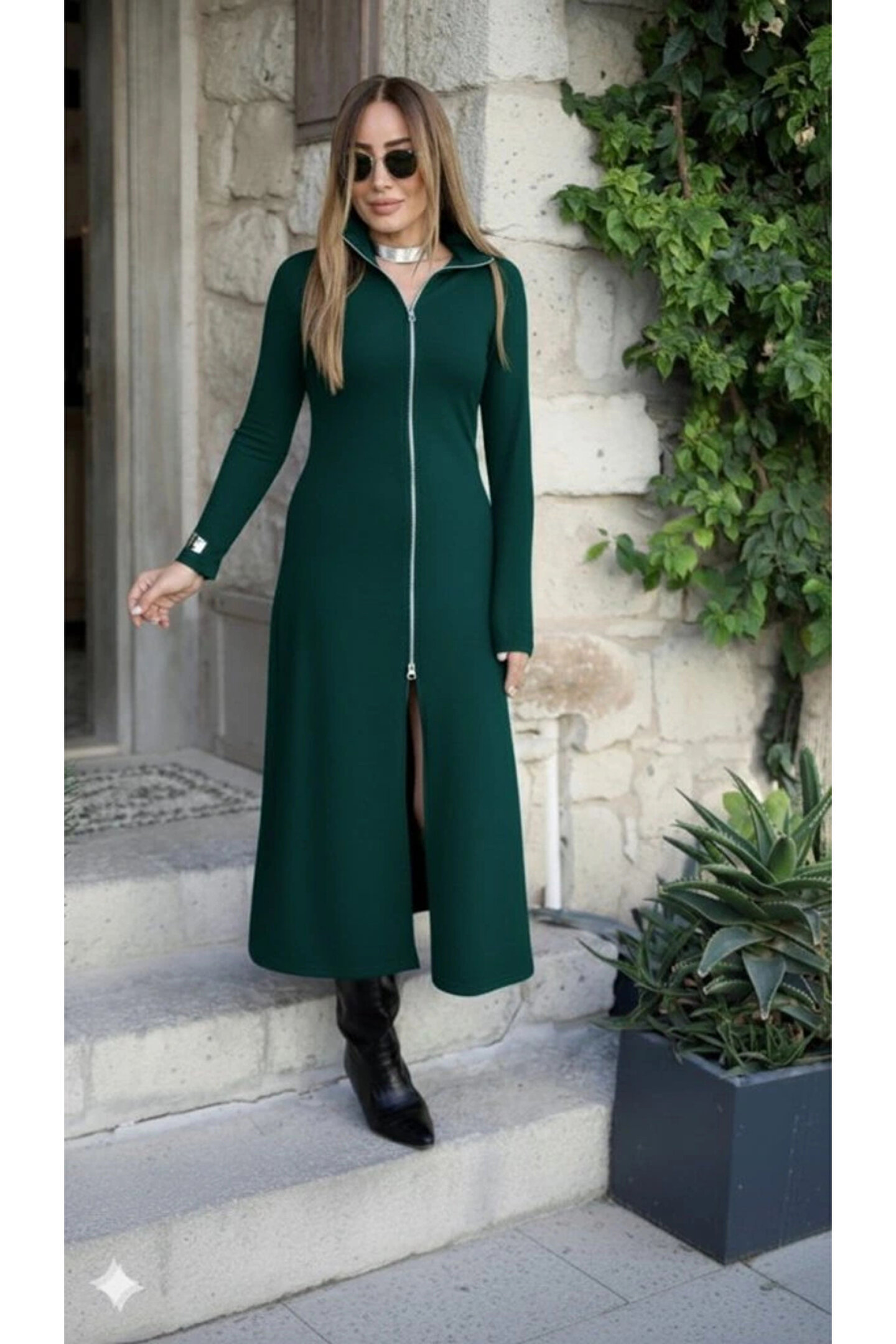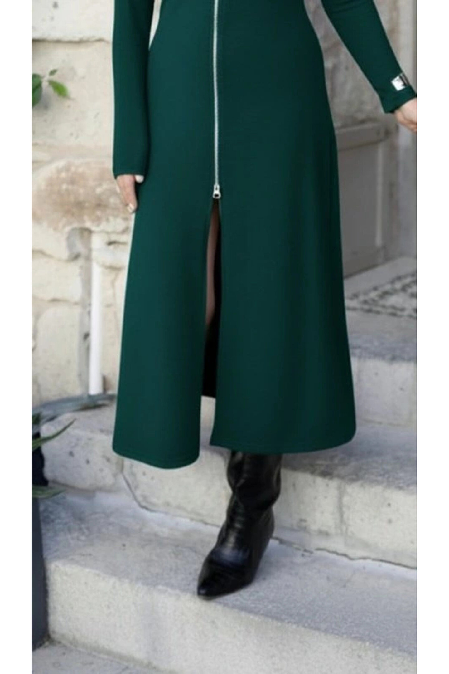 Lady Moss Kadın Uzun Kollu önden Fermuarlı Ithal Krep Elbise