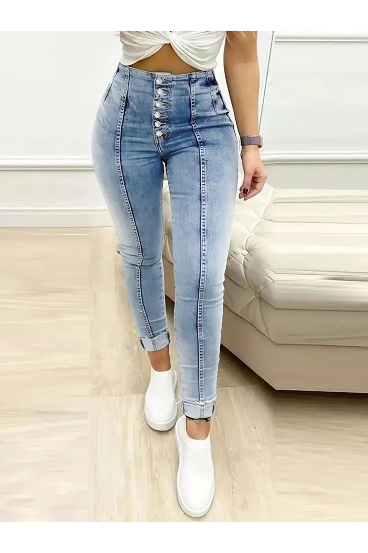 Kadın Yüksek Bel önden Düğmeli Jean Pantolon