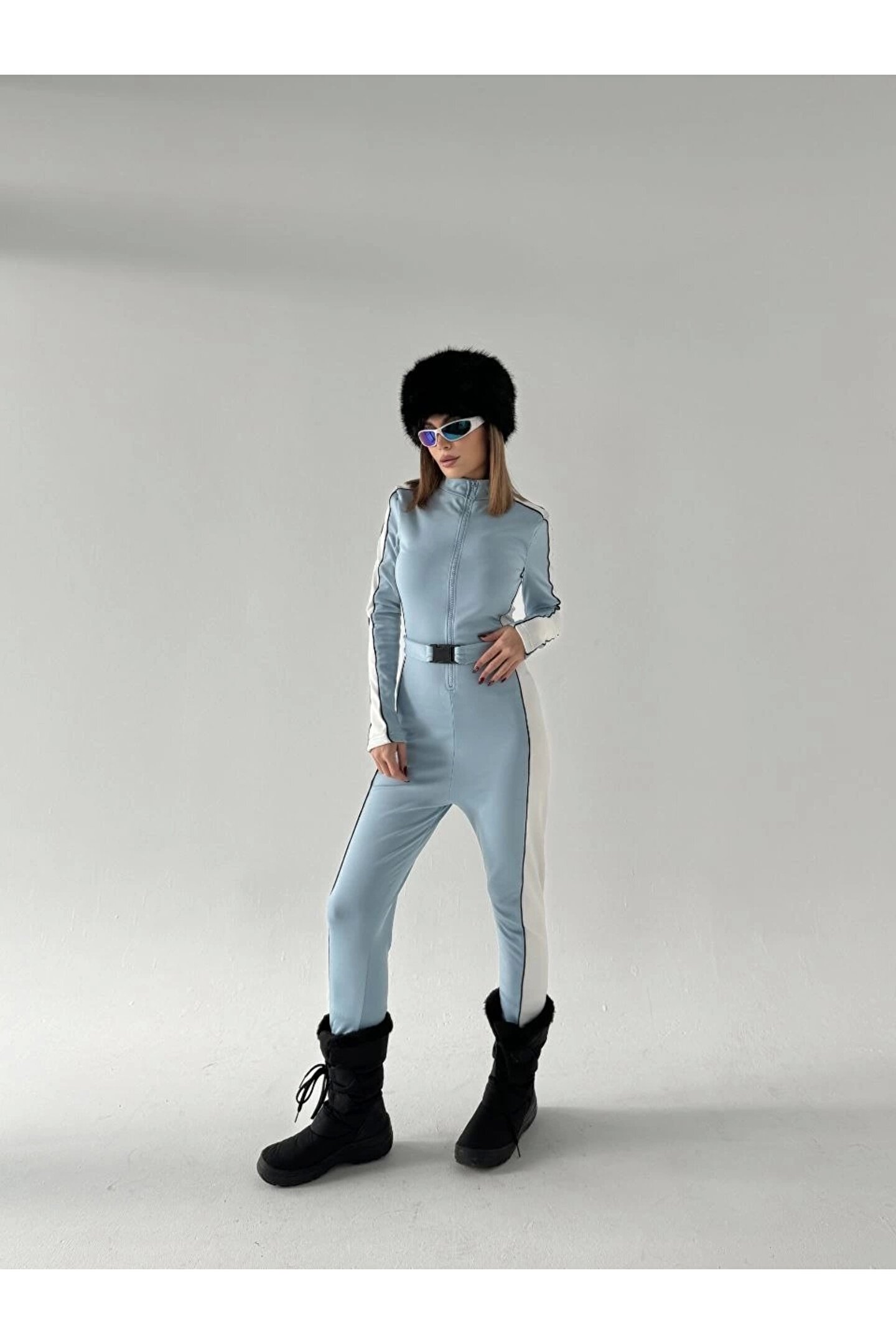 Lady Moss Kemer Detaylı Fermuarlı Tulum - Bebe Mavisi