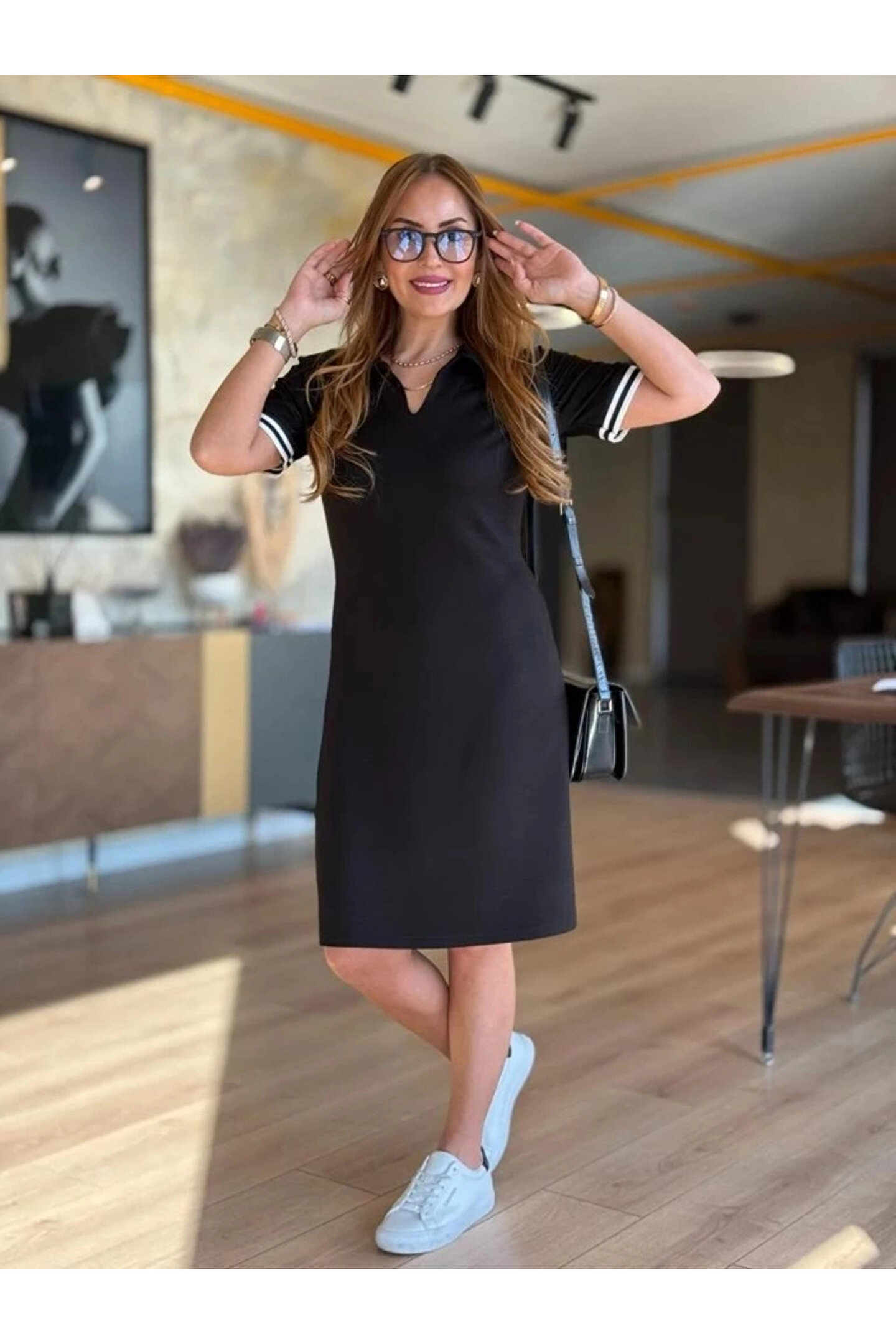 Kadın Kısa Kollu V Yakalı Viskon Iki Iplik Elbise