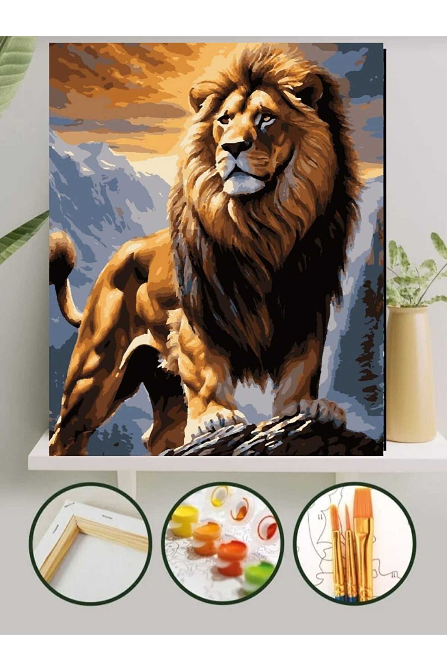 Lamba Cini Sayılarla Boyama Kasnaklı Tablo Seti Fırça Boya Dahil 40x50 ASLAN