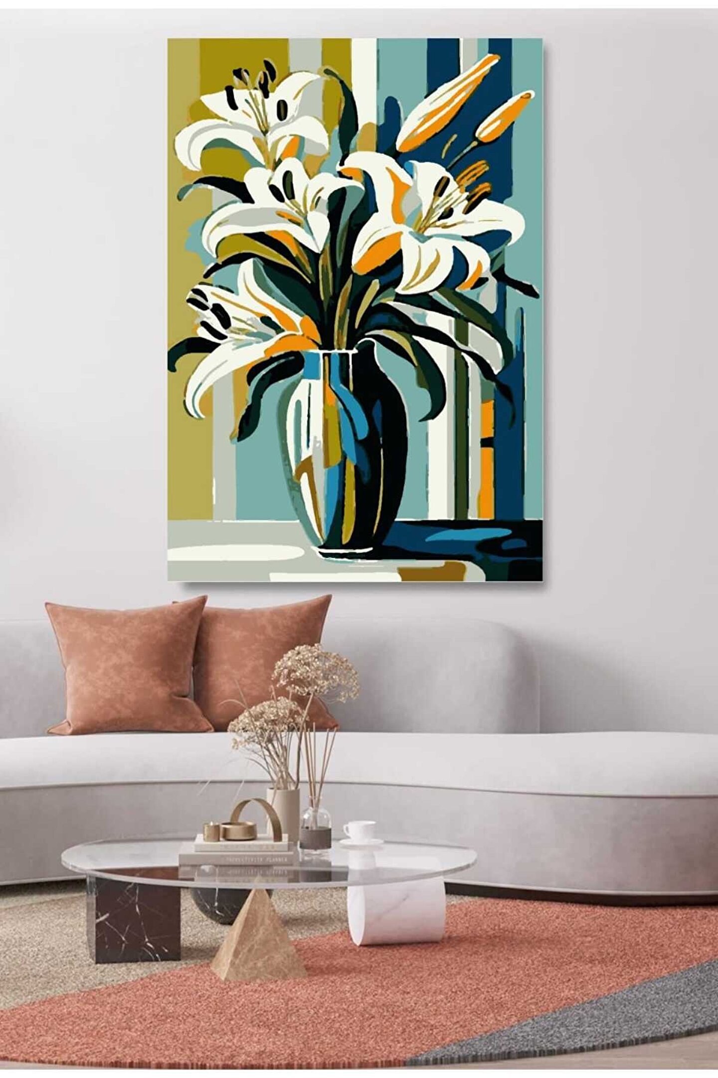 Lamba Cini Sayılarla Boyama Kasnaklı Tablo Seti Fırça Boya Dahil 40x50 BEYAZ SÜMBÜL