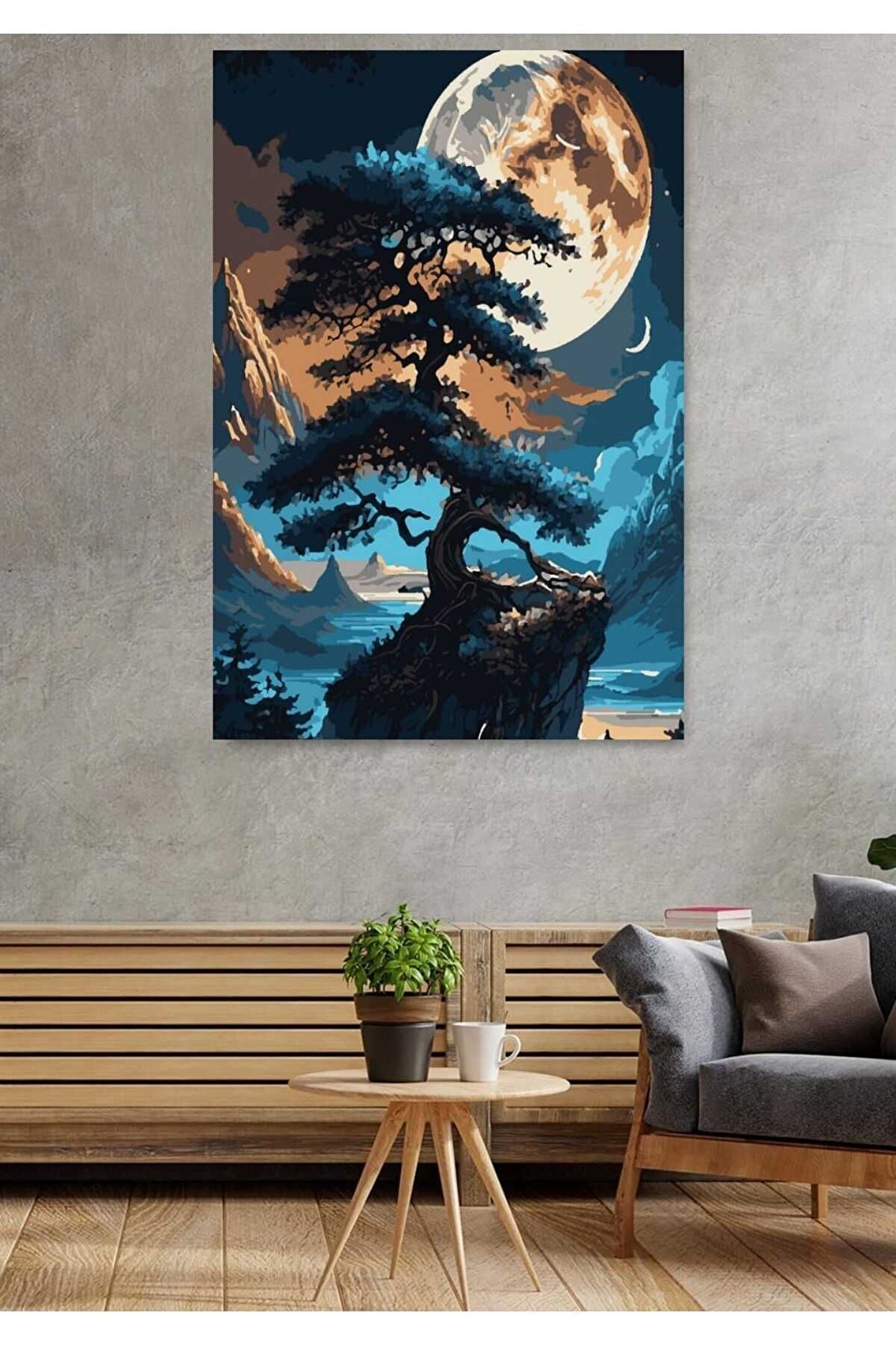 Lamba Cini Sayılarla Boyama Kasnaklı Tablo Seti Fırça Boya Dahil 40x50 Gökteki Ay