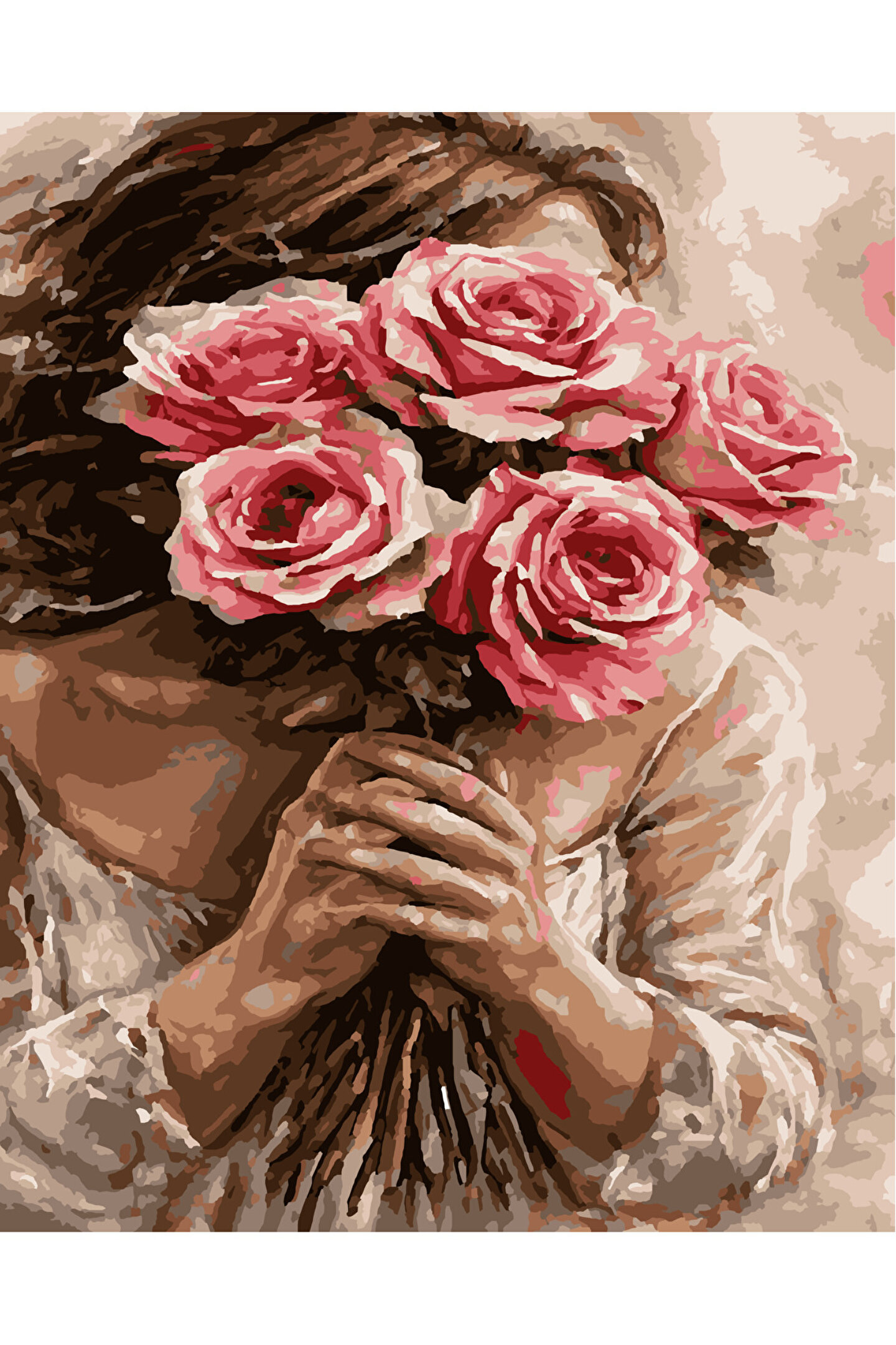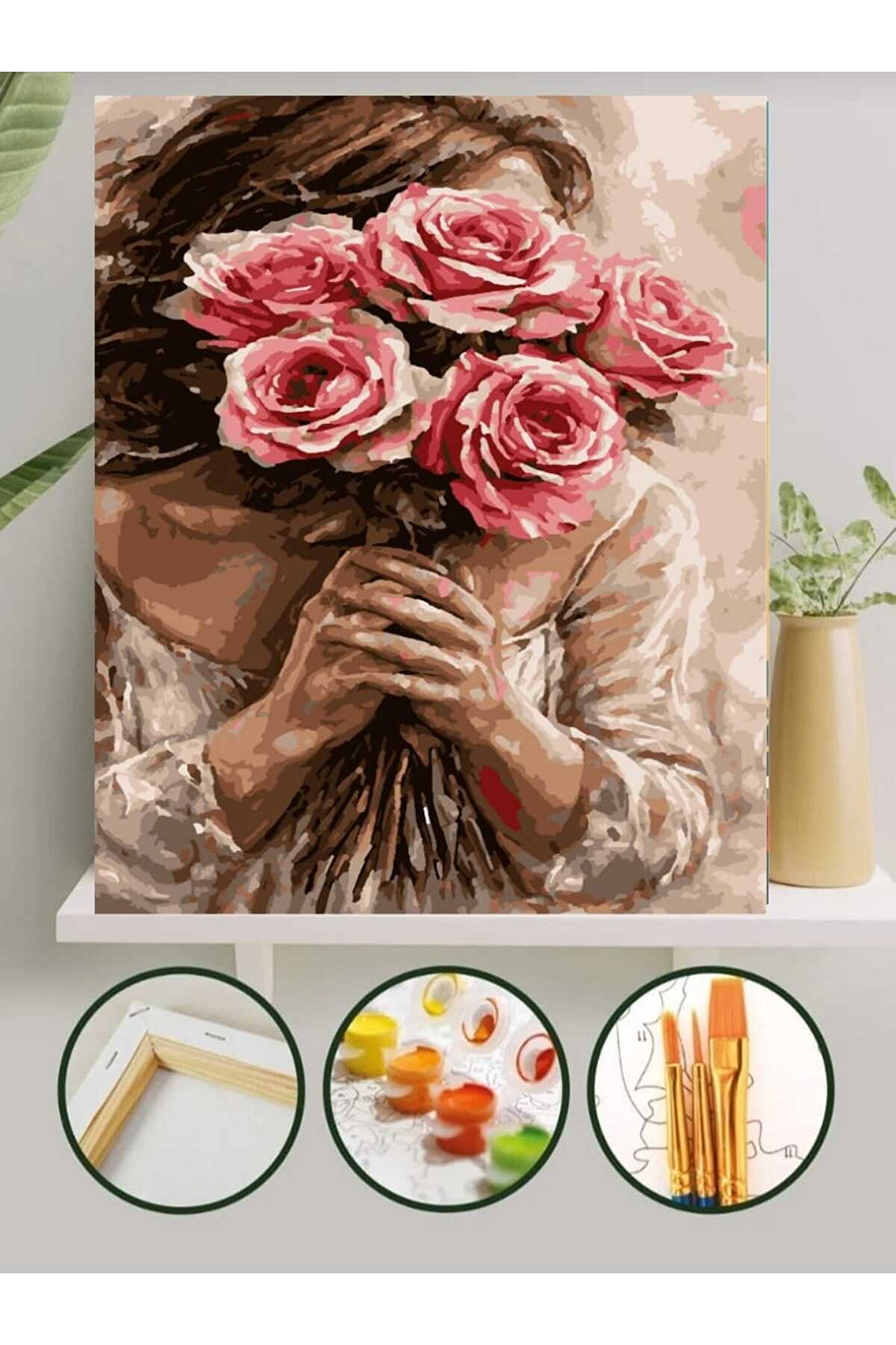 Lamba Cini Sayılarla Boyama Kasnaklı Tablo Seti Fırça Boya Dahil 40x50 Güller