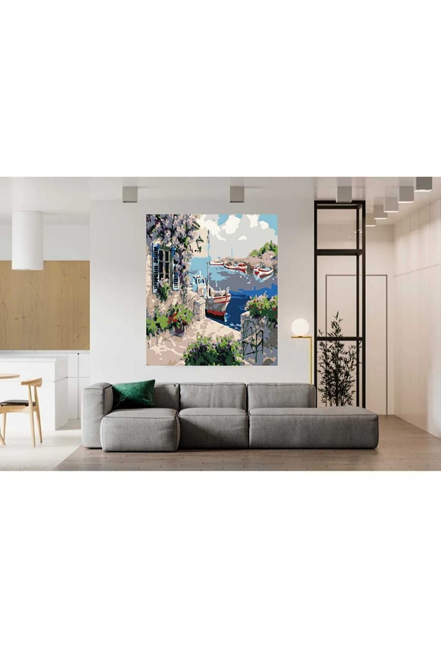 Lamba Cini Sayılarla Boyama Kasnaklı Tablo Seti Fırça Boya Dahil 40x50 Kayıkçı Barınağı