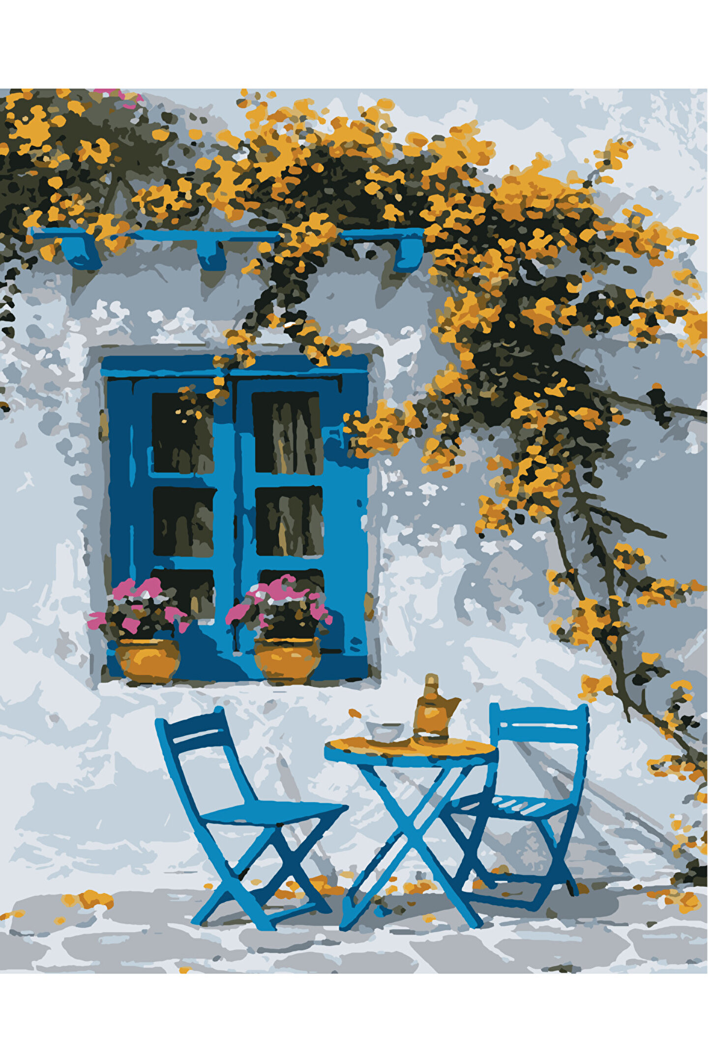 Lamba Cini Sayılarla Boyama Kasnaklı Tablo Seti Fırça Boya Dahil 40x50 MAVİ PENCERE