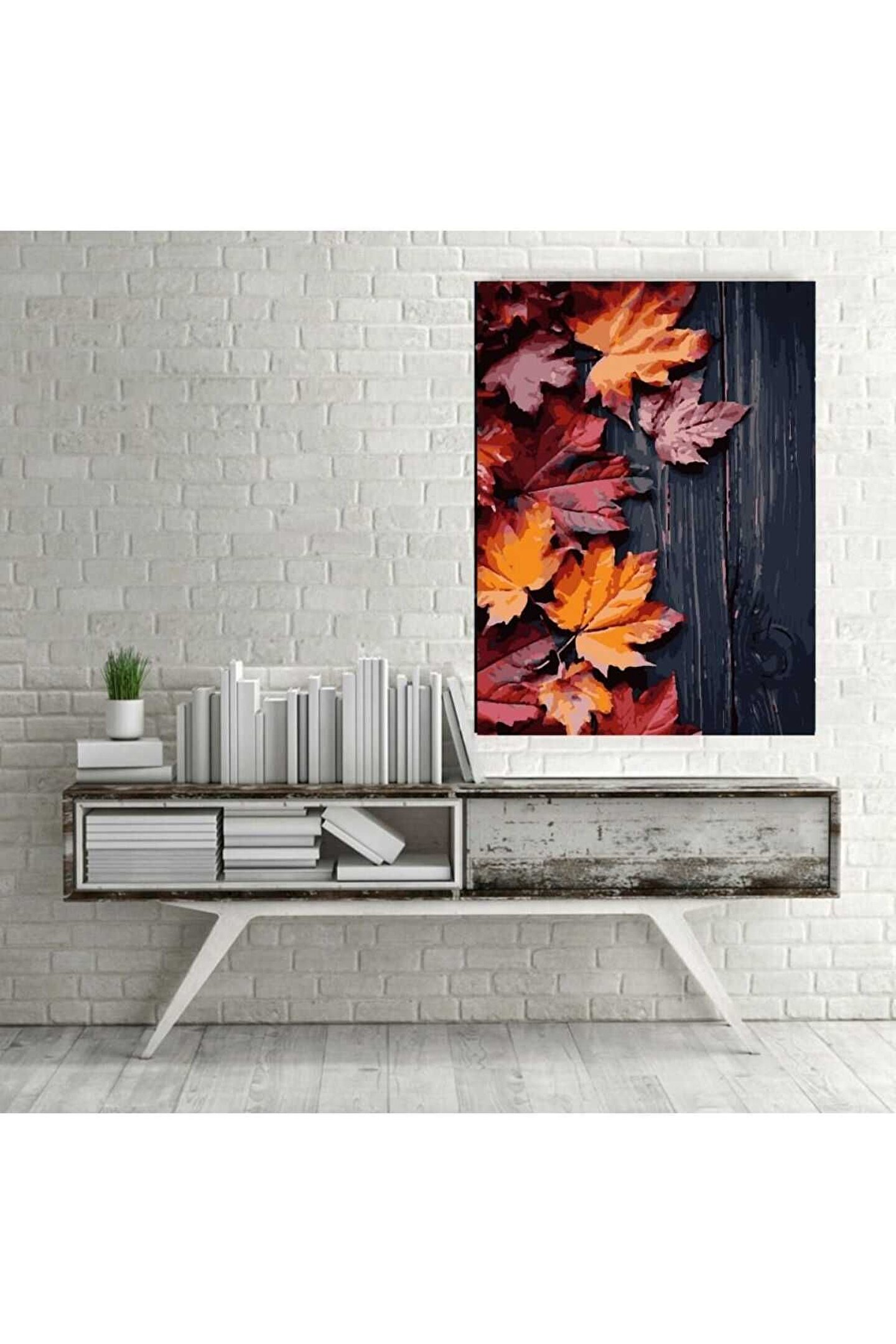 Lamba Cini Sayılarla Boyama Kasnaklı Tablo Seti Fırça Boya Dahil 40x50 Renkli Yapraklar