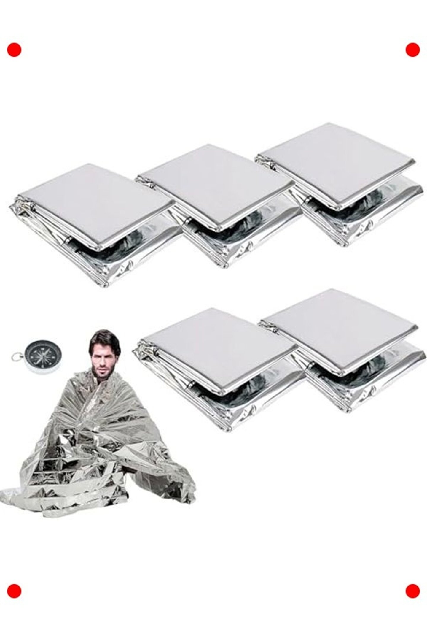 Her türlü açık etkinliği ve acil durum için tasarlanmış bu 5 adetlik termal battaniye seti, 150x200 cm boyutlarıyla etkili koruma sağlar.; Hafif ve kompakt yapısıyla sırt çantanızda veya ilk yardım çantanızda kolayca taşınabilir.; Özel malzemesi sayesinde vücut ısısını korur ve hipotermiye karşı etkili bir bariyer oluşturur.; Kamp, yürüyüş, dağcılık gibi doğa sporlarında, araç arızaları veya beklenmedik değişimlerinde hayat kurtarıcı olabilir.; Su geçirmez özelliği ile yağmur ve neme karşı koruma sağlar.; Her maceraperestin ekipman çantasında bulunması gereken pratik bir settir.
