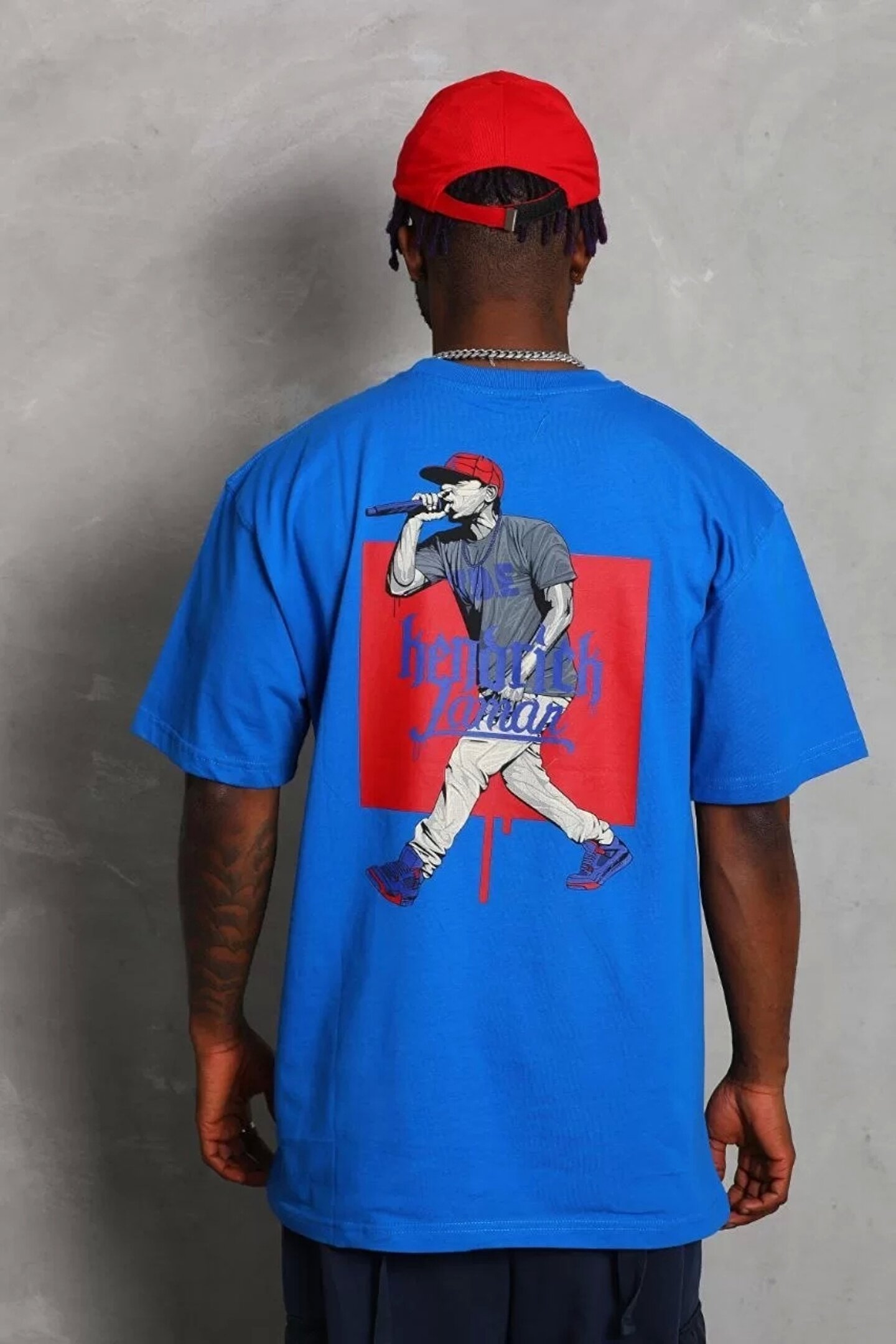 Lavıa Unisex Oversize Baskılı Bisiklet Yaka T-Shirt - Mavi