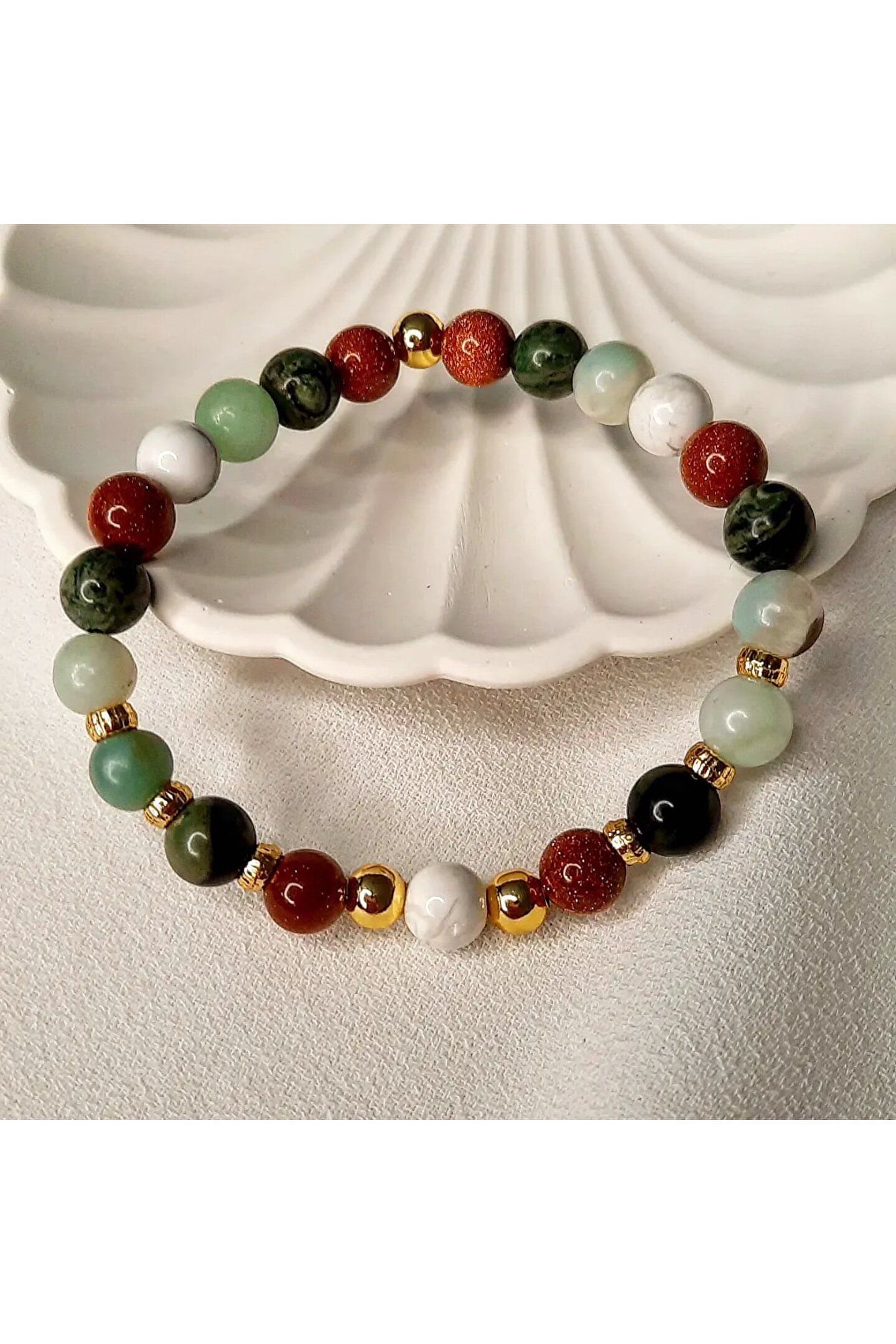 - Doğal taş bileklik, şıklığınızı tamamlayacak zarif bir aksesuardır; - Yıldız taşı ve havlit jasper gibi özel doğal taşlar kullanılarak üretilmiştir, bu da her bilekliğe benzersiz bir karakter katar; - Amazonit taşı, bilekliğe canlı ve göz alıcı bir parlaklık kazandırırken, havlit jasper ise dayanıklılığı ve estetiği bir arada sunar; - Doğal taş materyali sayesinde her bileklik, doğanın saf güzelliğini parmaklarınıza taşır;