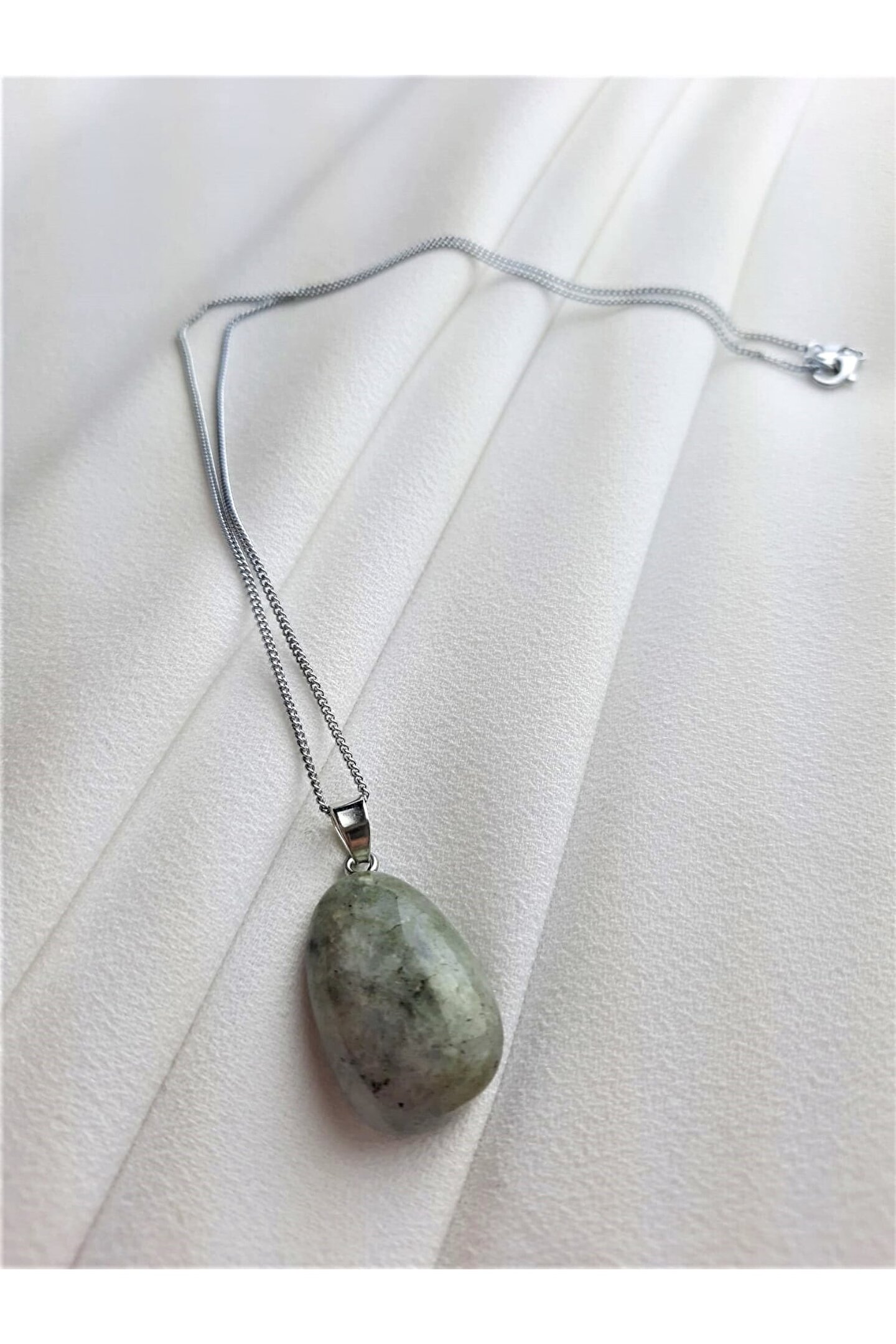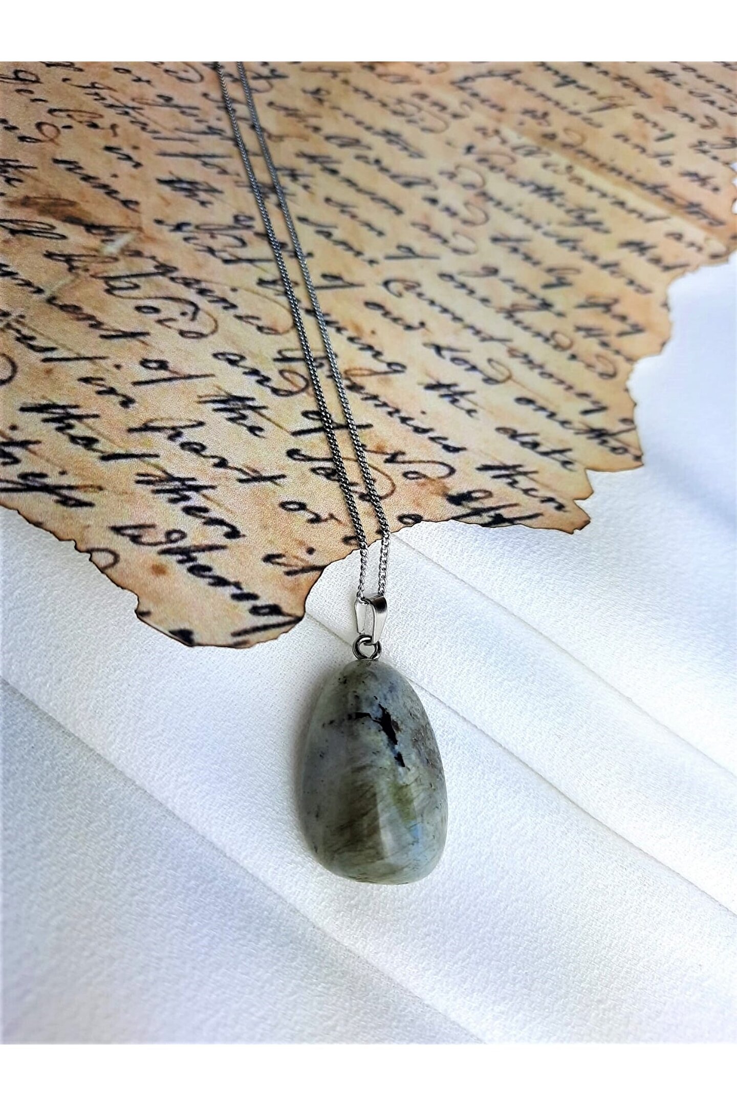 Doğal taş kullanımı sayesinde her kolye benzersiz ve otantik bir görünüm sunar; Labradorit taşı, enerjiyi dengelemeye yardımcı olur ve pozitif bir etki yaratır; Doğal taş materyali ile hem şıklığı hem de doğallığı bir arada yaşatır;