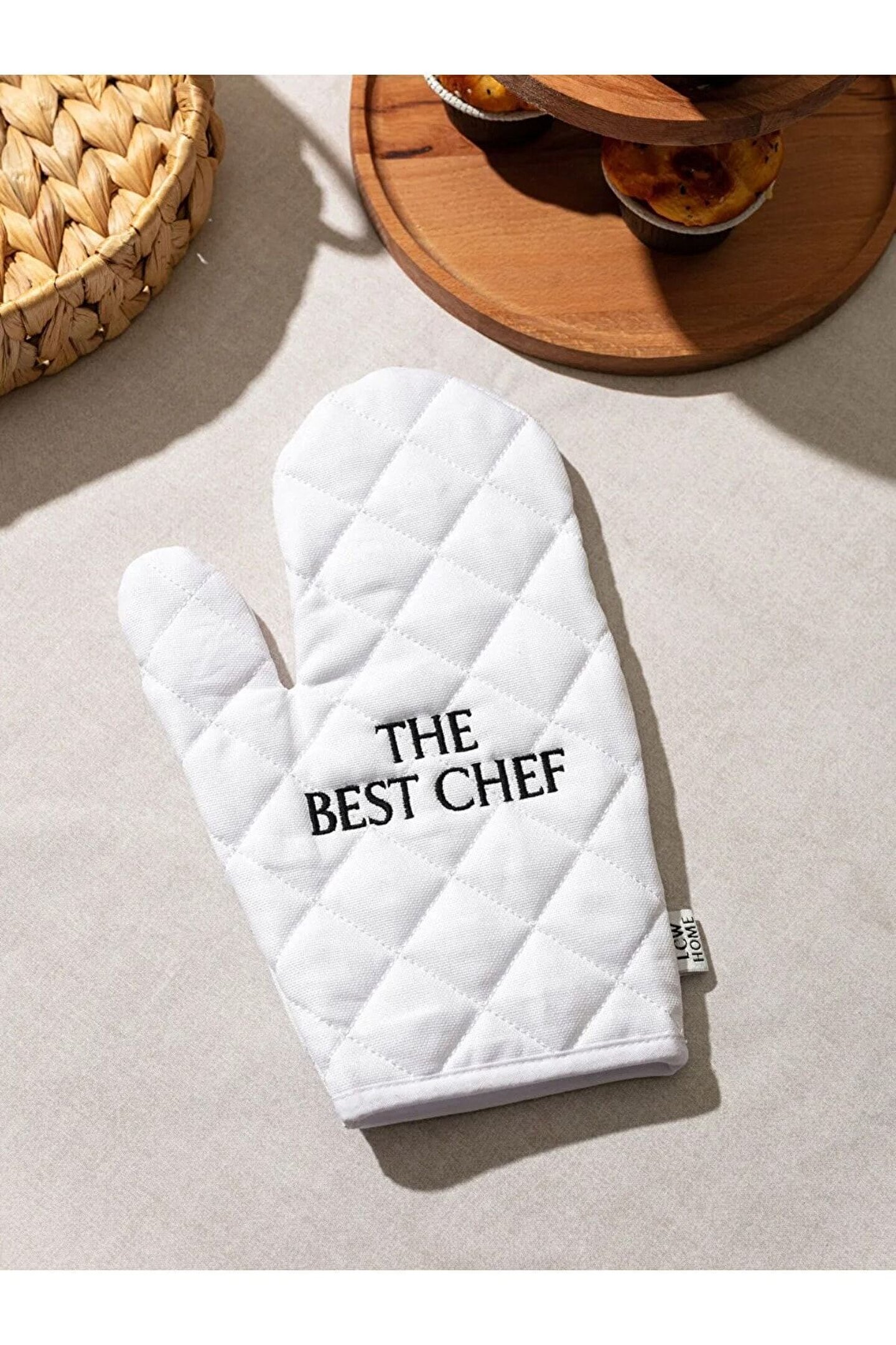 Fırın Eldiveni Beyaz Yazı Nakışlı Pamuklu