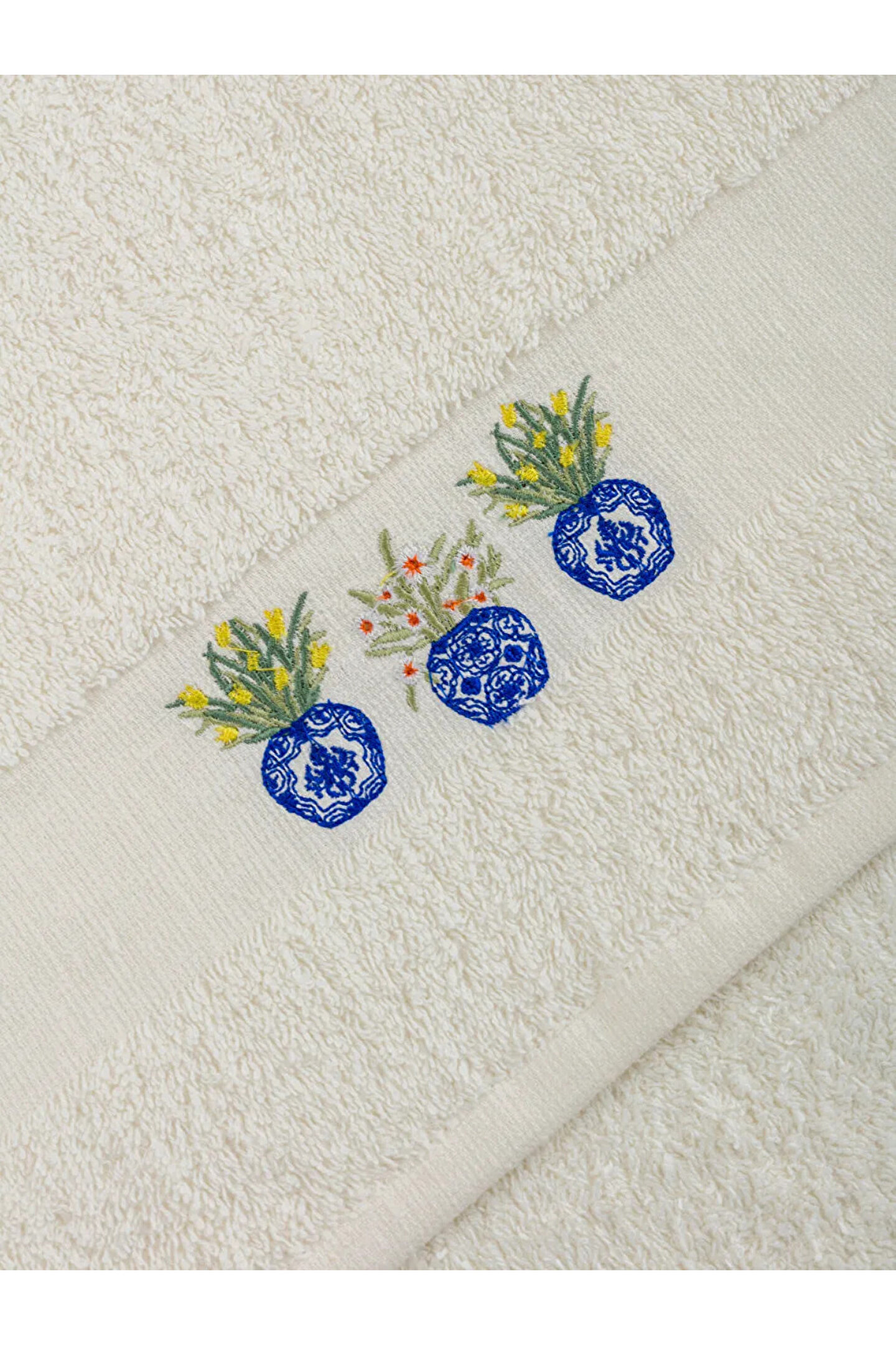 Nakışlı pamuklu yüz havlusu, pamuk gibi doğal ve yumuşak bir malzemeden üretilmiştir. Pamuk, havlunun cilde hassas bir şekilde temas etmesini ve suyu etkili bir şekilde emmesini sağlar.