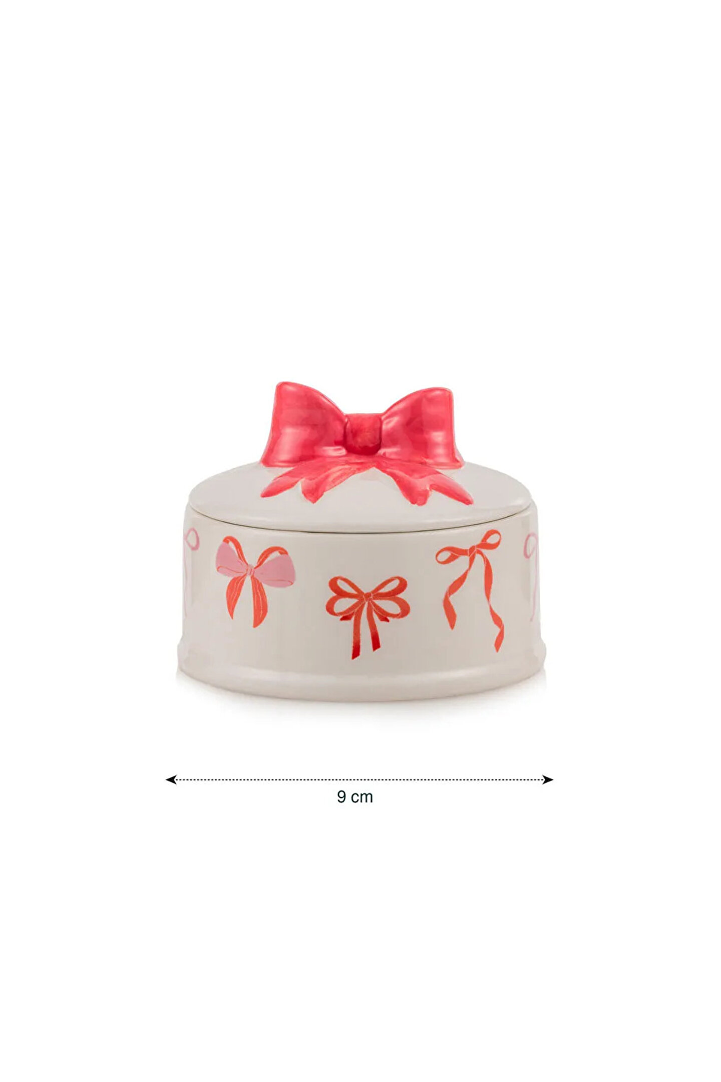 LC Waikiki LCW HOME Kırmızı Fiyonk Baskılı Seramik Saklama Kabı 9 Cm