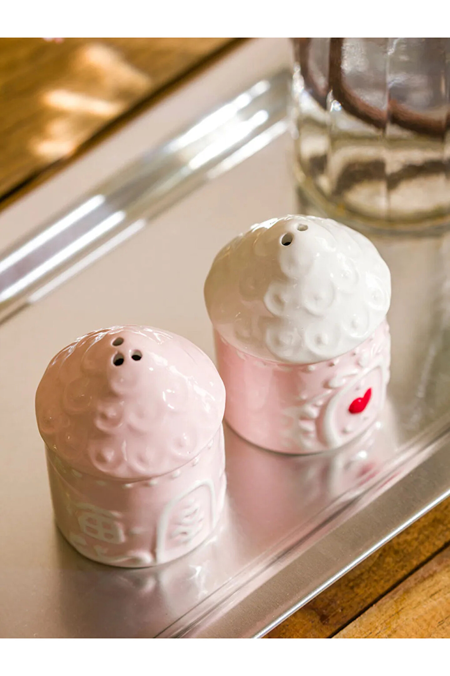 Kurabiye ev şeklinde tasarlanmış, kabartma desenli ve kalp detaylı tuzluk biberlik seti, seramik malzemeden üretilmiştir.; ; ; Ürün Tipi: Tuzluk & Biberlik ; Koleksiyon: Yılbaşı ; Malzeme: Seramik ; Ürün Ebat: 7 cm ; Desen: 3 Boyutlu ; Kalıp: Standart & Regular ;