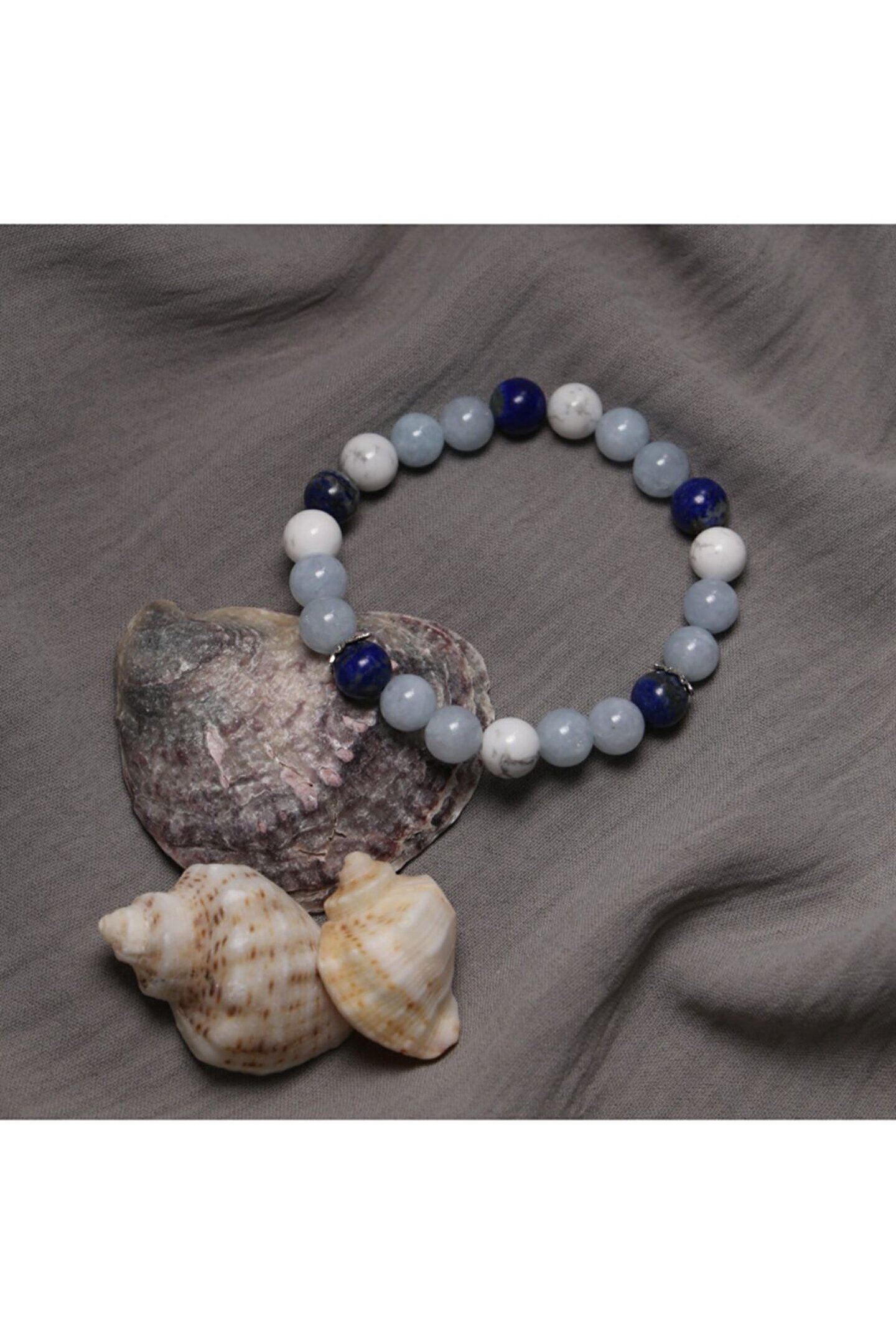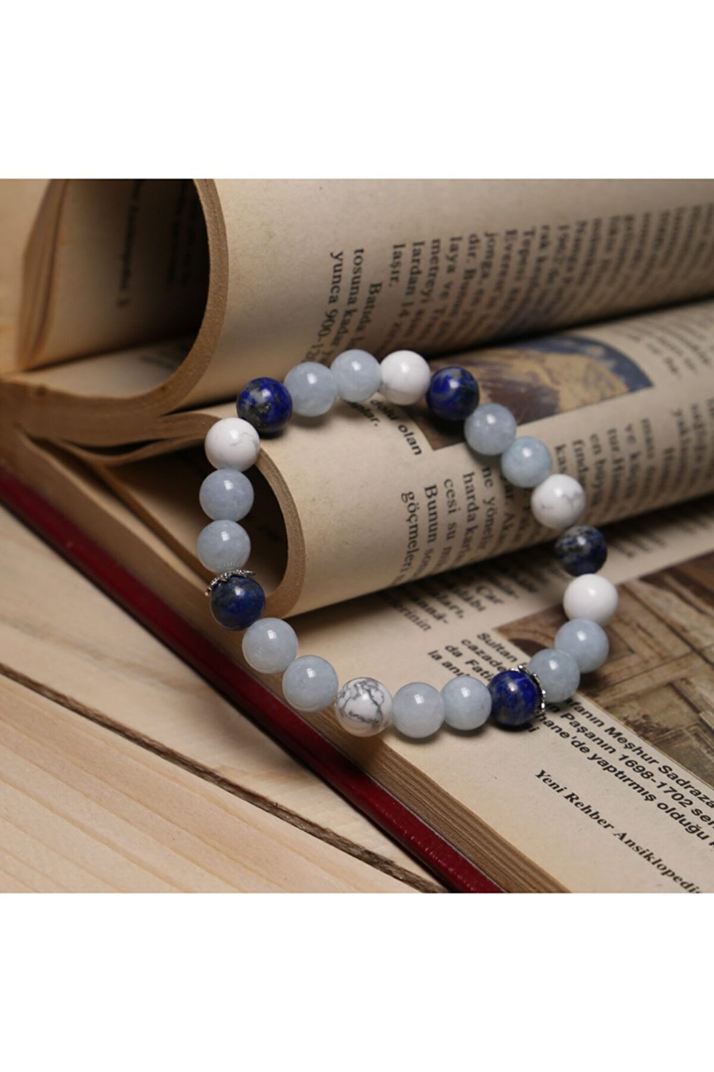 Doğal Lapis Lazuli Havlit AkuamarinTaş Depresyonu yenmenize yardım ediyor. ; Rahatlama taşı olan AKUAMARİN depresyon tedavisine yardım edip, gençlik, canlılık verir.; Zihinsel temizlik taşı olan LAPİS LAZULİ iç barışı ve kişinin kendisine değer vermesini sağlar.; Stres giderici mutluluk taşı olan HAVLİT de iç dünyanızı sakinleştirir, içinizdeki fırtınayı yumuşatır ve öfkenizi azaltır.; AKUAMARİN ve LAPİS LAZULİ birlikte vücudun hormon dengesini sağlayıp, tiroid bezlerinizi güçlendirirken HAVLİT de kalsiyum dengenizi korur.; AKUAMARİN alkol, sigara ve uyuşturucu gibi zehirli maddelerden uzak tutar, bunlara olan tiryakiliği zayıflatır ve solunum yollarında iyileştirici etkisi vardır.; ; Lapis Lazuli Havlit Akuamarin modelimiz ortalama 22-23 adet 8mm A kalite Gerçek Doğal Taştan oluşur.; Bileklikte kullanılan 925 ayar GÜMÜŞ ile doğal taşın etkisi arttırılmıştır. ; Bileklik dayanıklı elastik ip nedeniyle her bileğe uyumludur. Siparişiniz özel Lc19 kutusunda gönderilecektir. ;