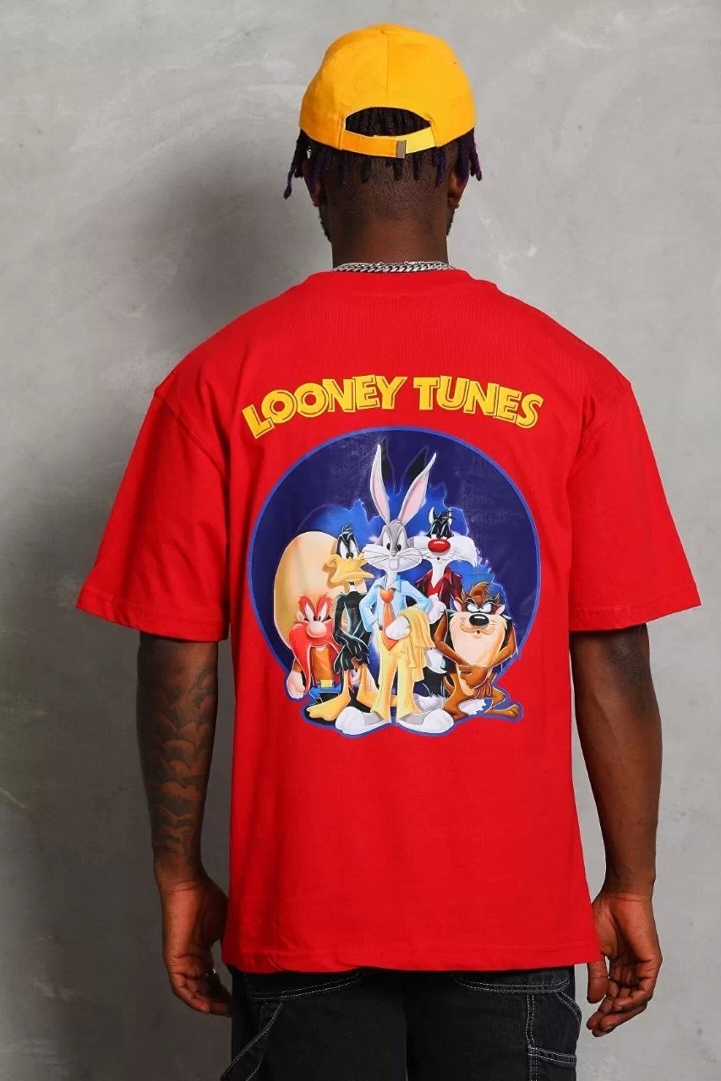 Leyaa Unisex Oversize Baskılı Bisiklet Yaka T-Shirt - Kırmızı