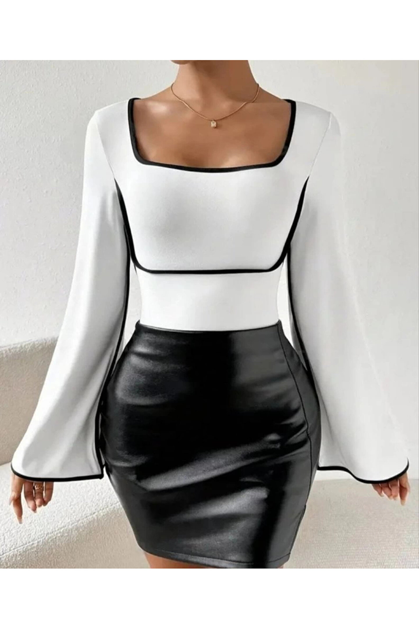 leyla sanat sanata yeni bir ba Kadın U Yaka Siyah şerit Detyalı Yarasa Kol Dalgıç Kumaş Arabiyeli Bluz
