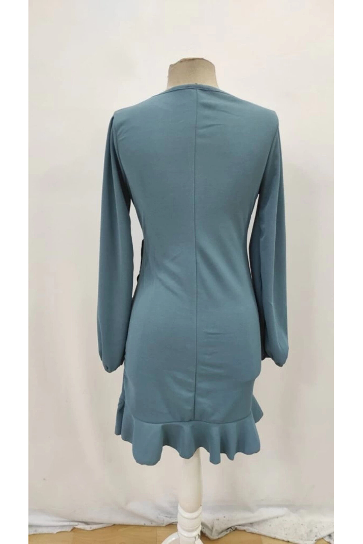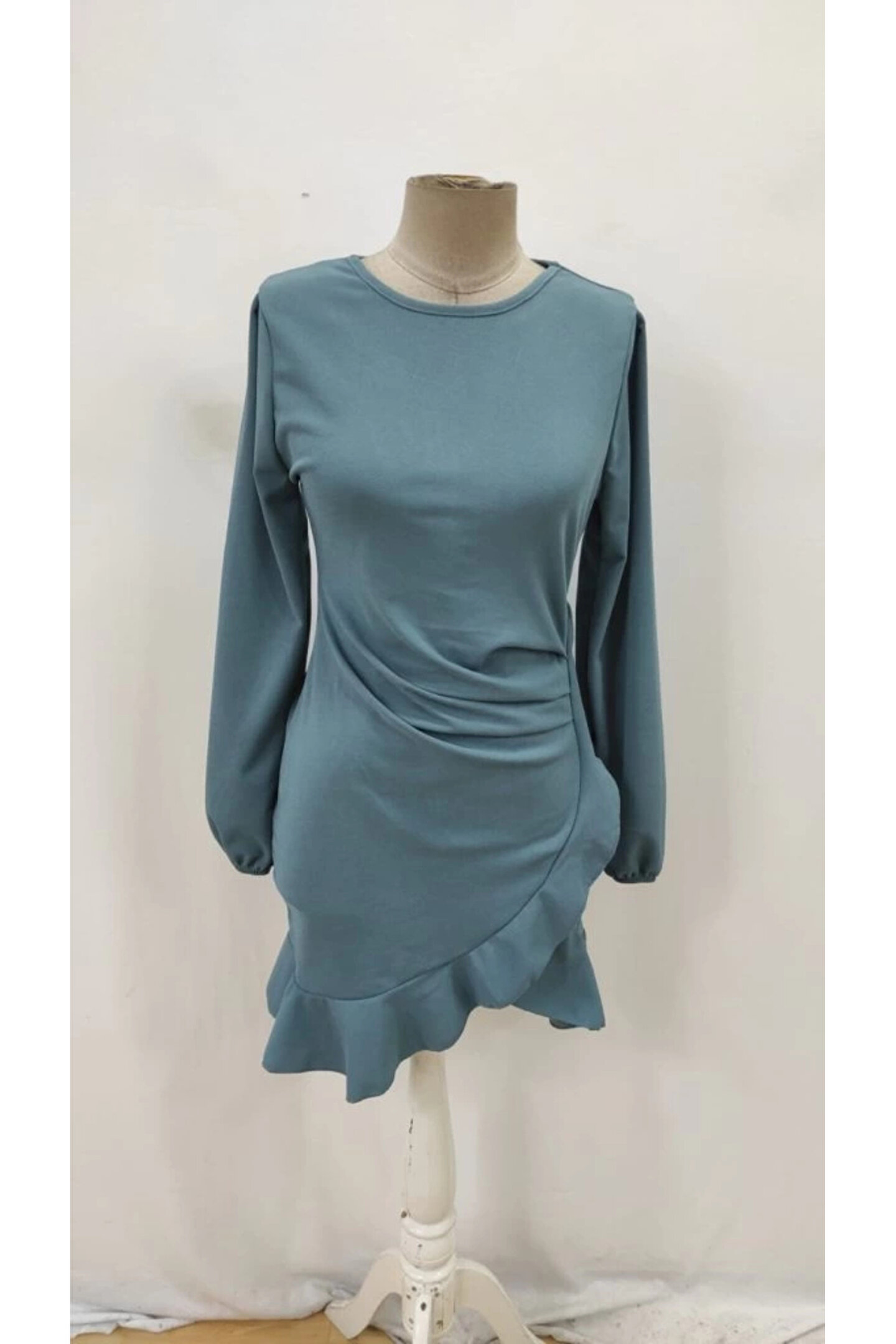 Kadın Uzun Kollu Bisiklet Yaka önden Volanlı Ithal Krep Elbise