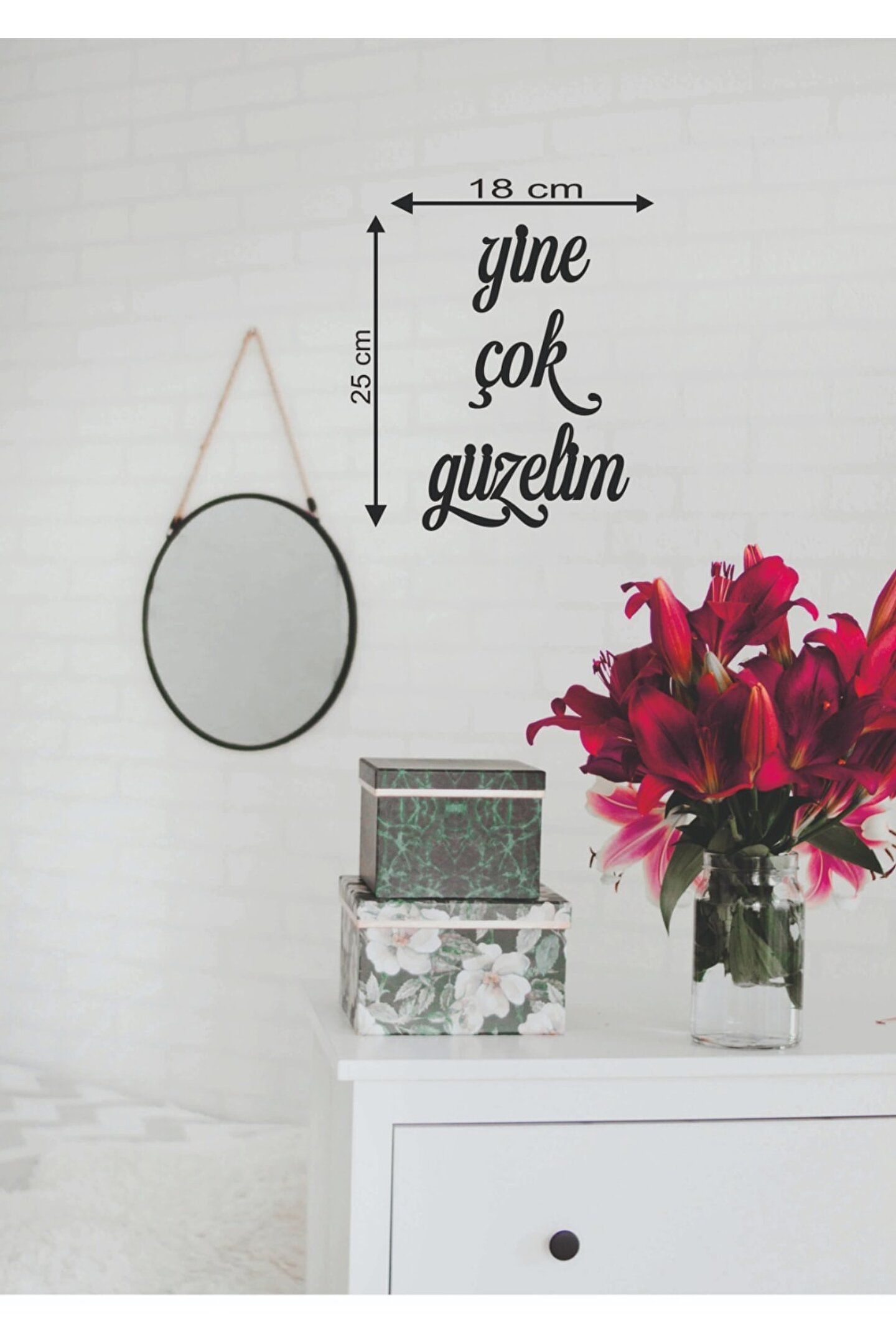Doğal ahşap malzemesiyle üretilmiş, dayanıklı ve uzun ömürlü kullanım sunar; 25; 18 cm boyutlarındaki bu duvar yazısı, mekanınıza sıcak ve doğal bir dokunuş katar; Ahşabın doğal güzelliğini evinizin her köşesine taşıyarak dekoratif bir atmosfer yaratır; Kolay montaj imkanı sayesinde duvarlarınıza pratik bir şekilde asılabilir ve kişisel dokunuşlarınızı sergilemenize olanak tanır;