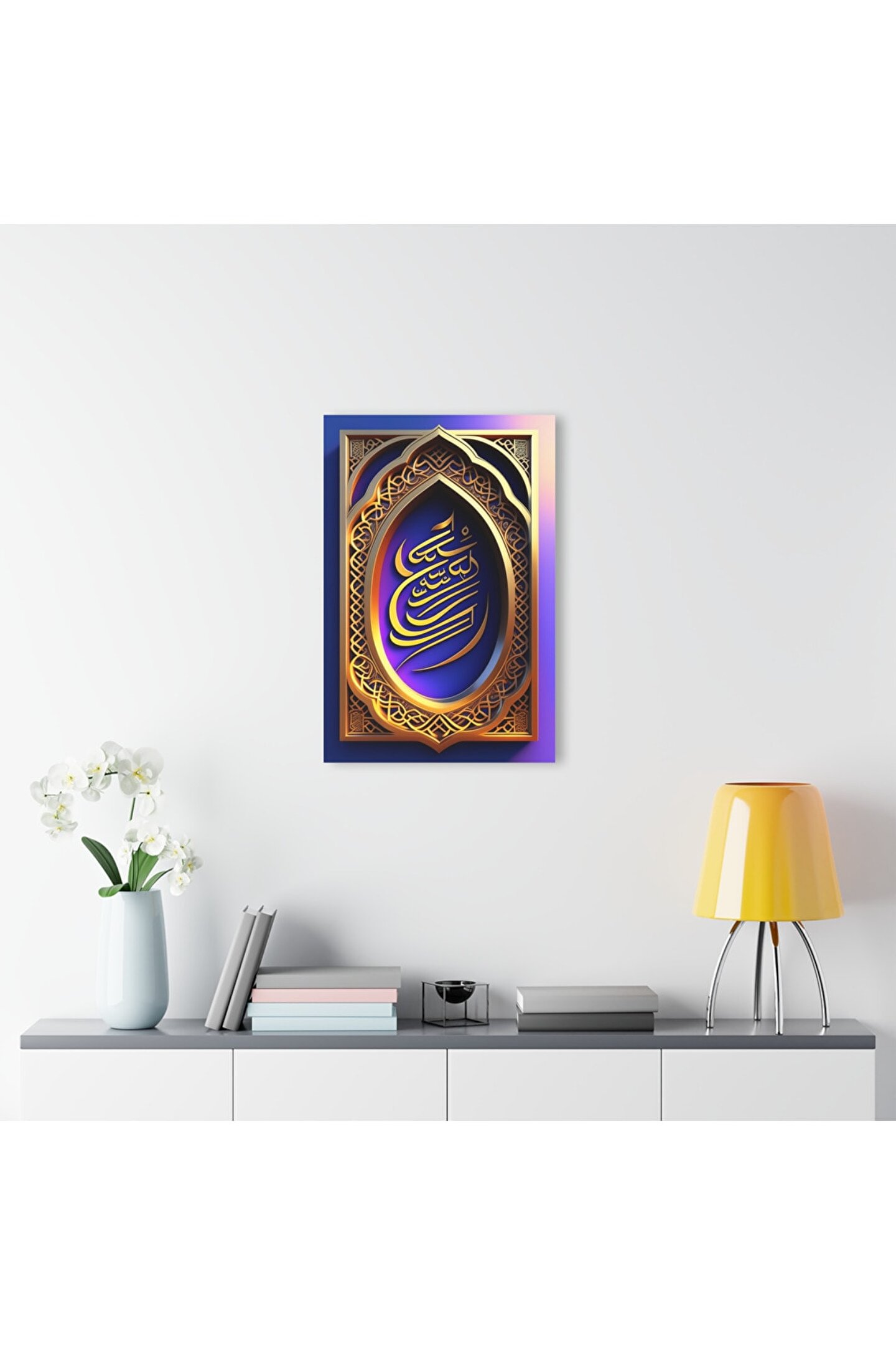 LEYLASER 3 Boyutlu Kuran-ı Kerim Altın ve Mor İslami Arapça Yazı Cam Tablo Duvar Dekoru