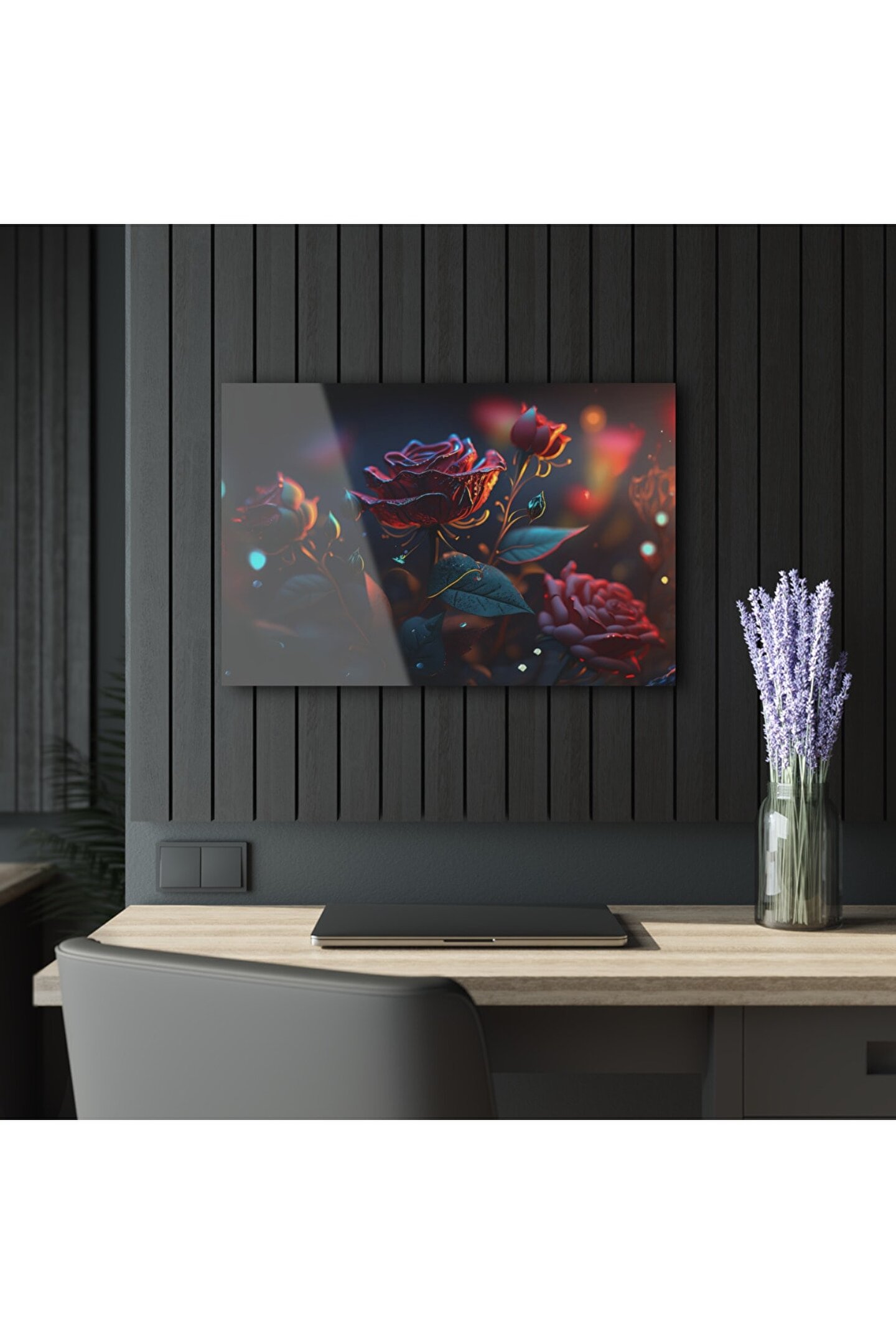 LEYLASER 3D Boyutlu Gül Cam Tablo Duvar Dekoru 2