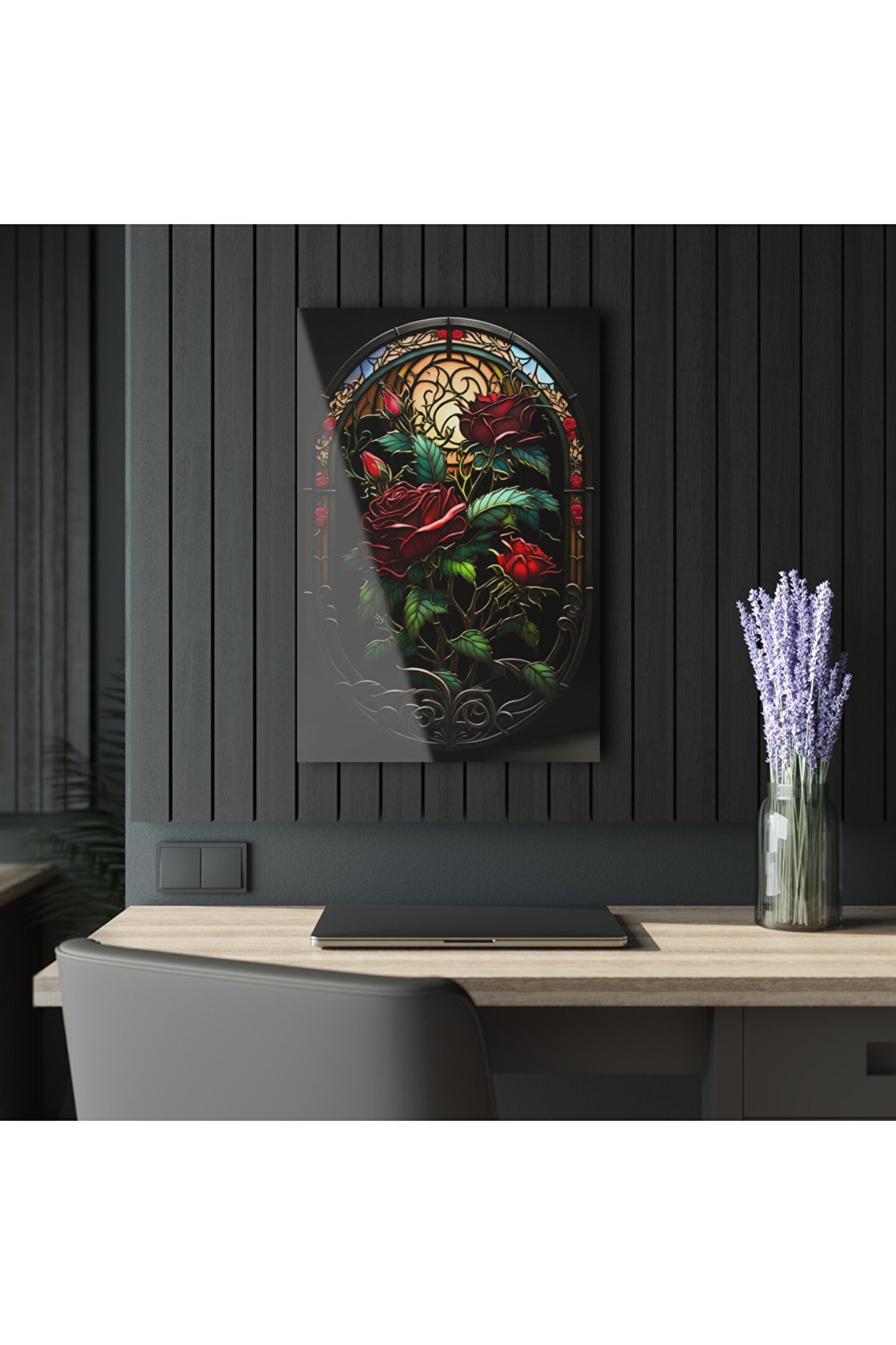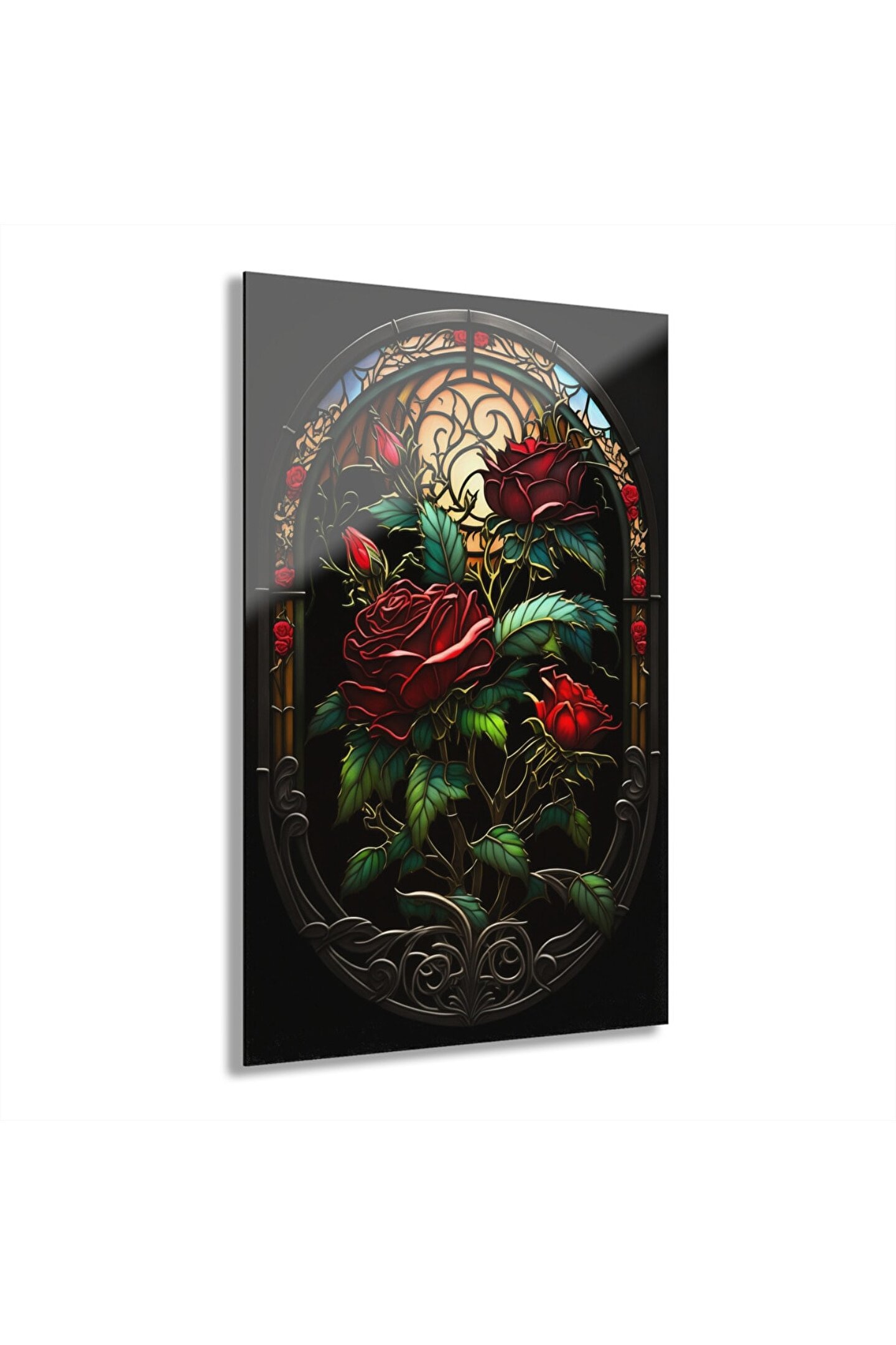 LEYLASER 3D Boyutlu Gül Cam Tablo Duvar Dekoru