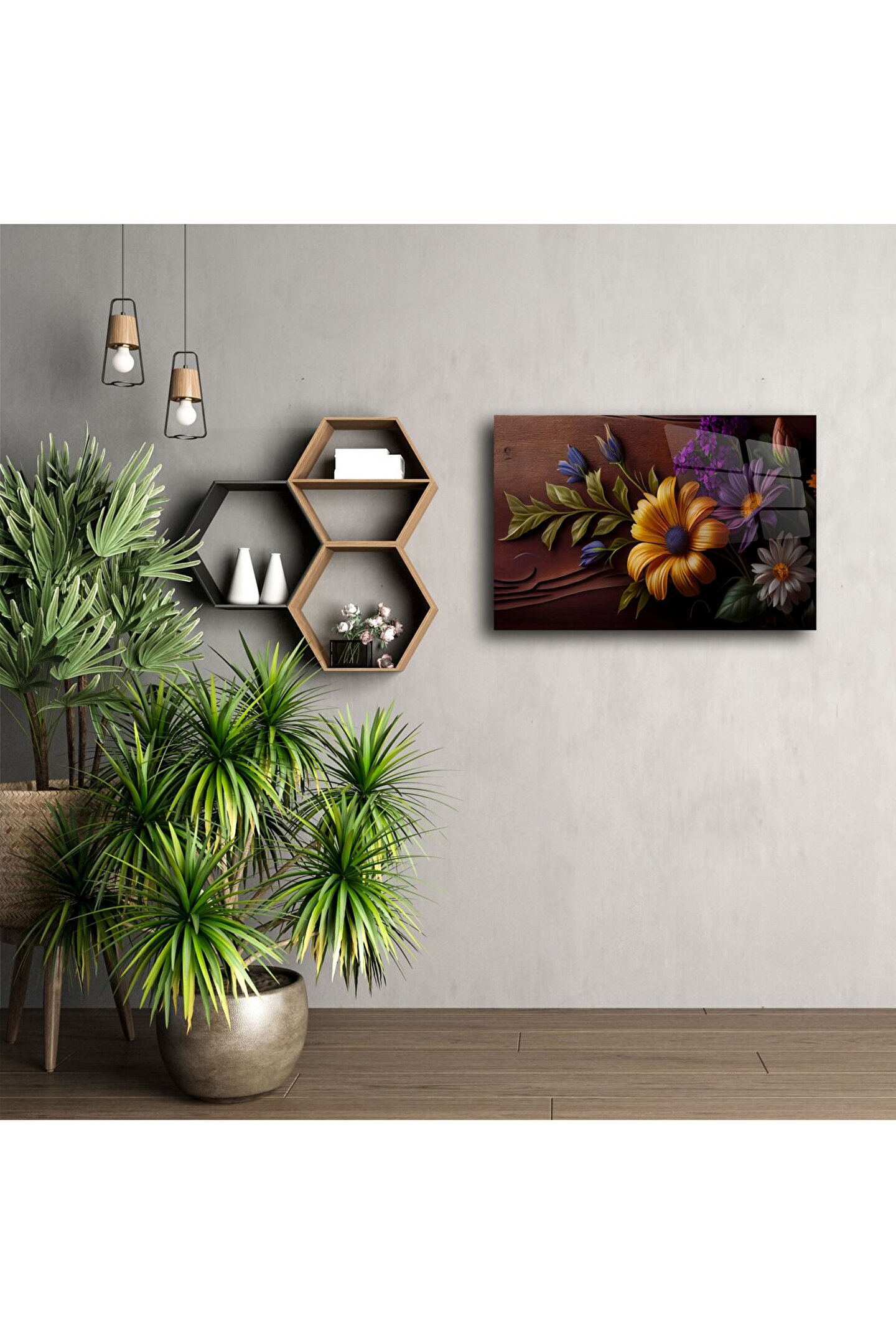LEYLASER Ahşap Zeminli Çiçekli Cam Tablo