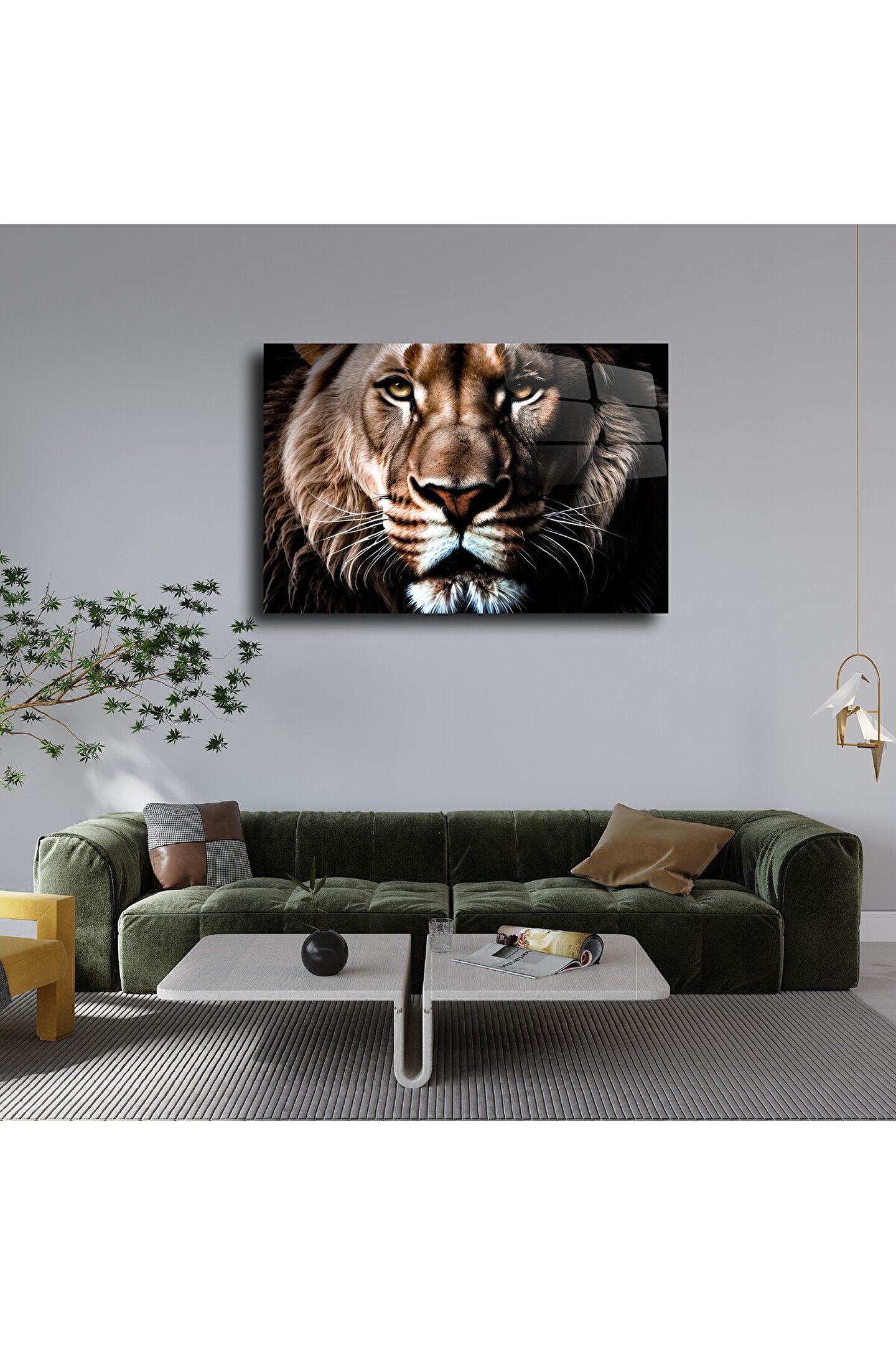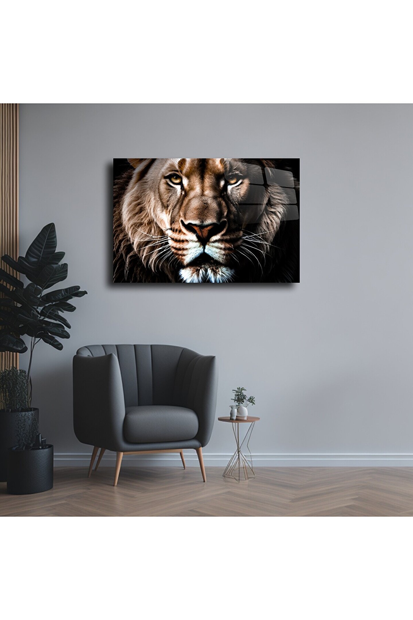 LEYLASER Aslan Yüzü Cam Tablo Duvar Dekoru
