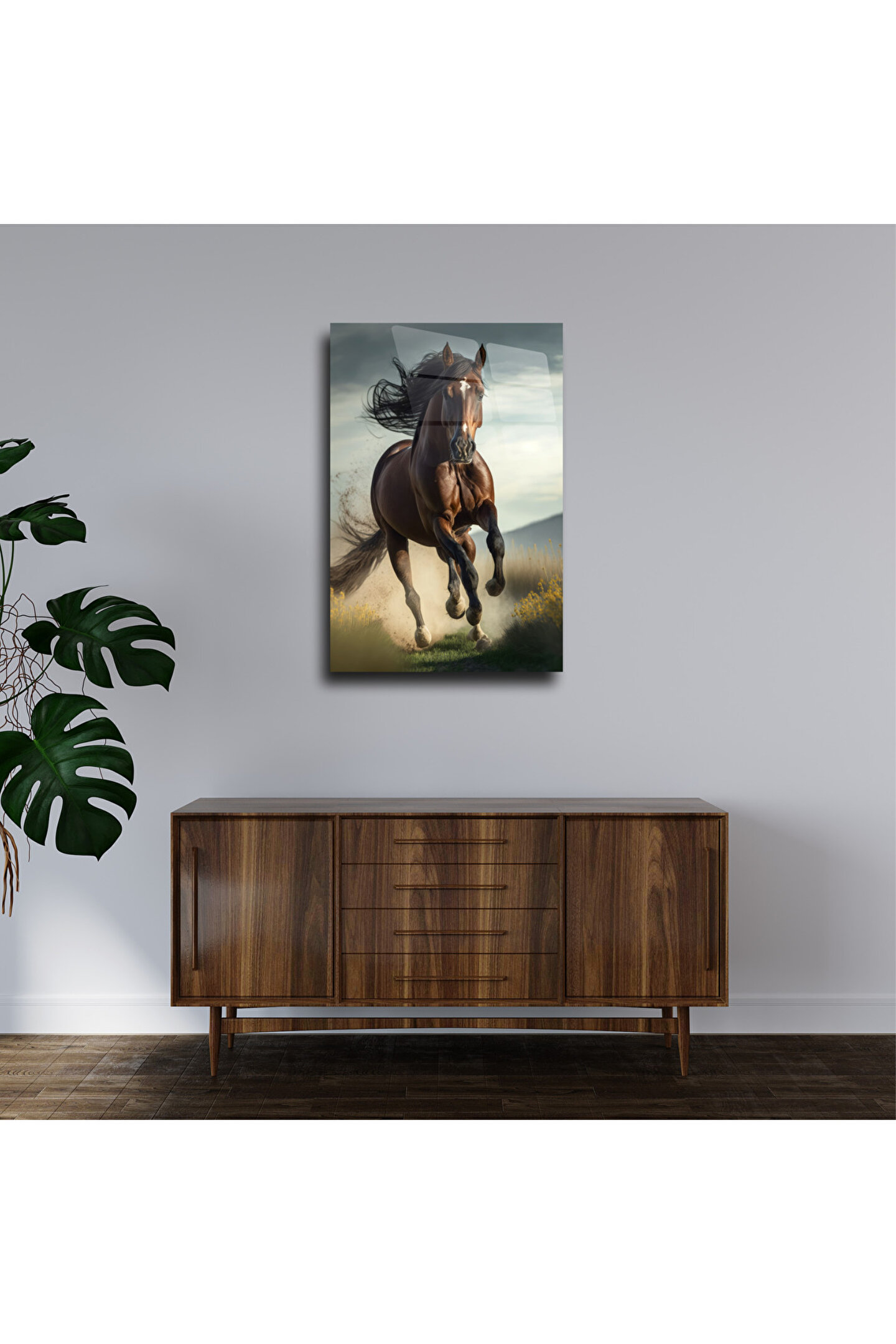 LEYLASER At Temalı Cam Tablo Duvar Dekoru 1