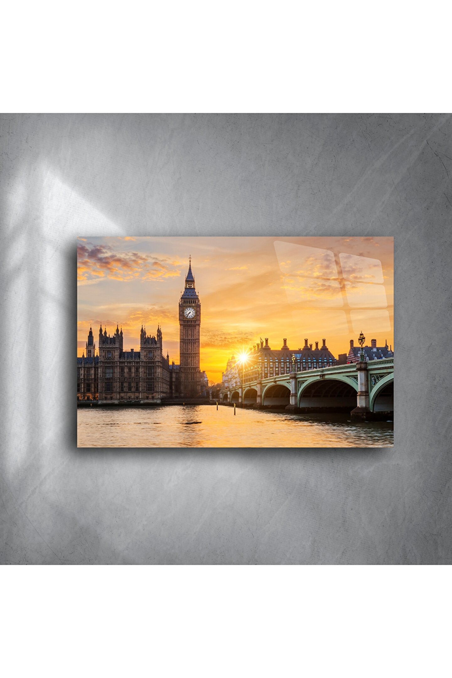LEYLASER Big Ben Londra Gün Batımı Manzaralı Cam Tablo