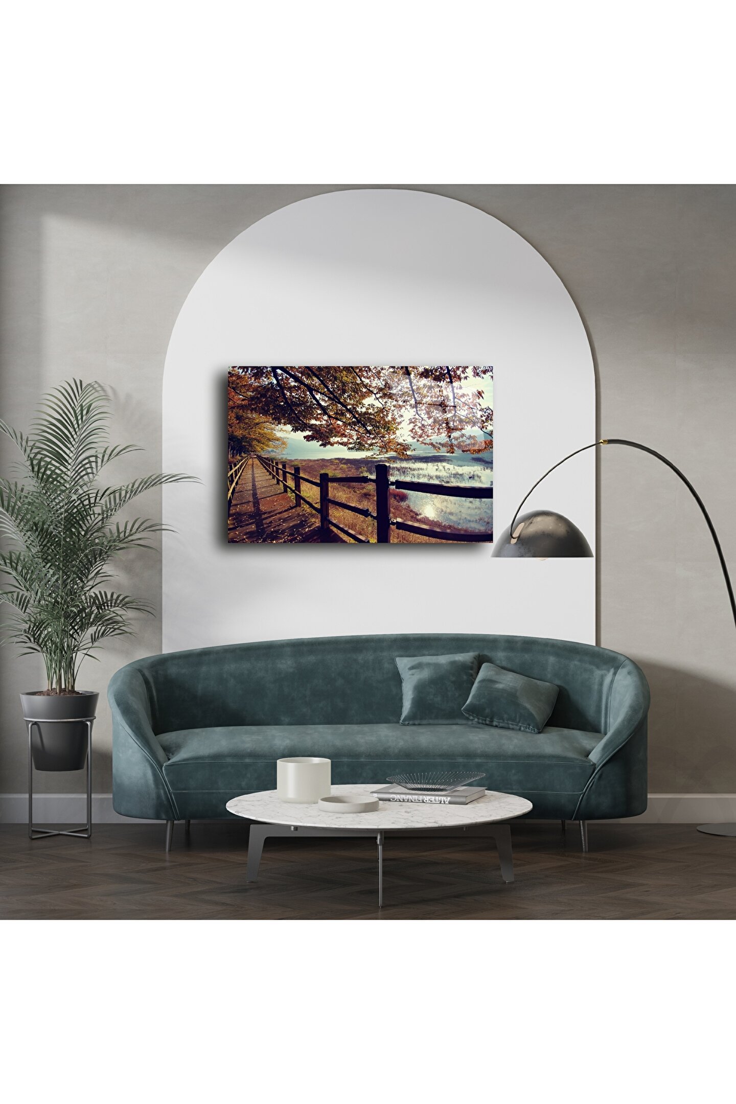 Cam Duvar Sanatı Doğal Yürüyüş Yolu Paneli, iç huzur ve doğa sevgisini yaşam alanınıza taşıyan büyüleyici bir sanat eseridir. Işıltılı göl yansımaları, yaprak döken ağaçlar ve sonsuza uzanan ahşap yolun birleşimi, bu tabloya derin bir dinginlik ve romantizm kazandırıyor.