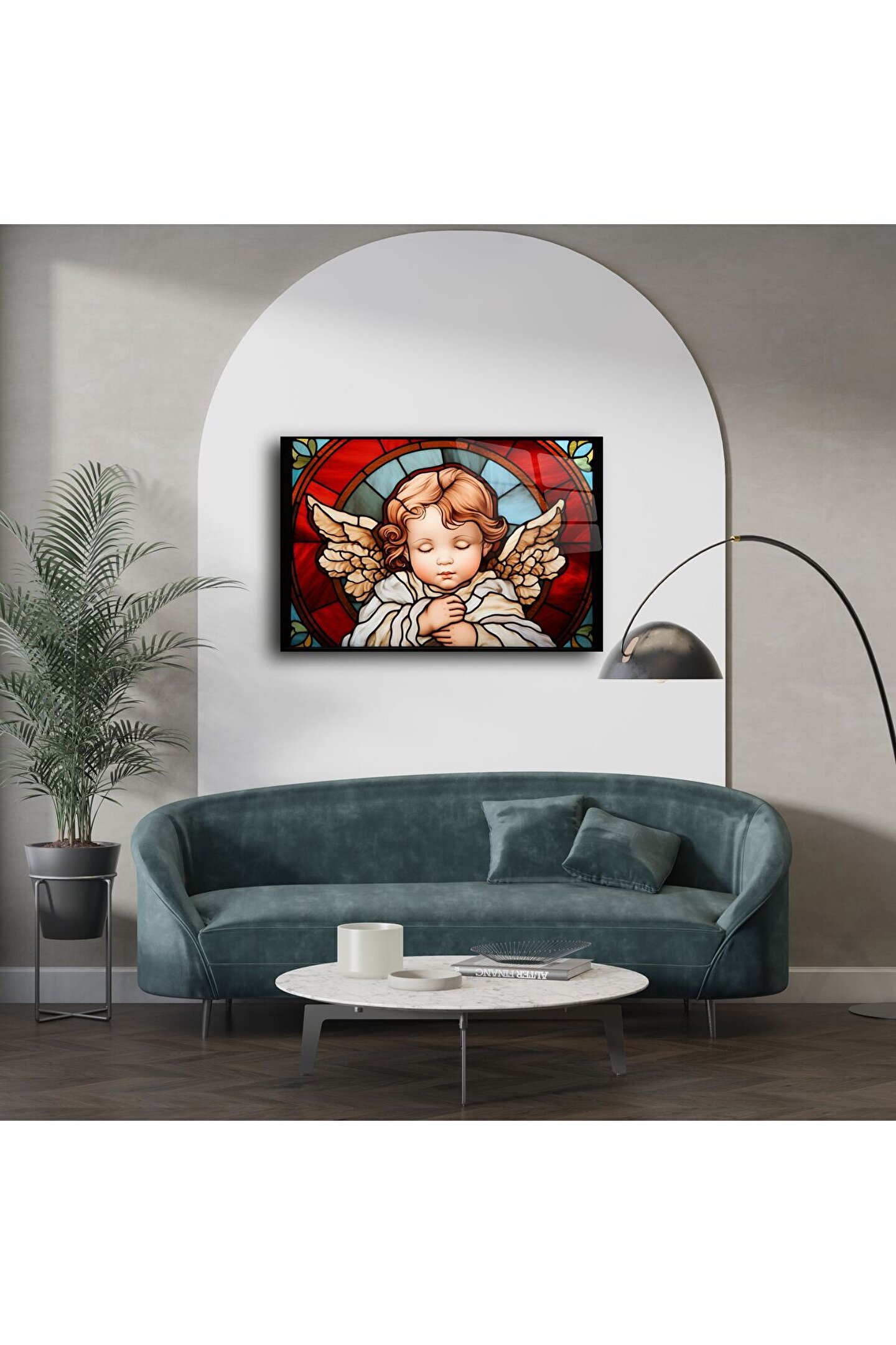 Cam Duvar Sanatı Melek Figür Paneli, evinize huzur ve maneviyatı taşıyan, zarif ve duygusal bir dekoratif sanat eseridir. Kutsal ve koruyucu sembollerin yansıması olan bu uyuyan melek figürü, yüksek kaliteli temperli camüzerine işlenmiş ve barok detaylarla zenginleştirilmiştir.