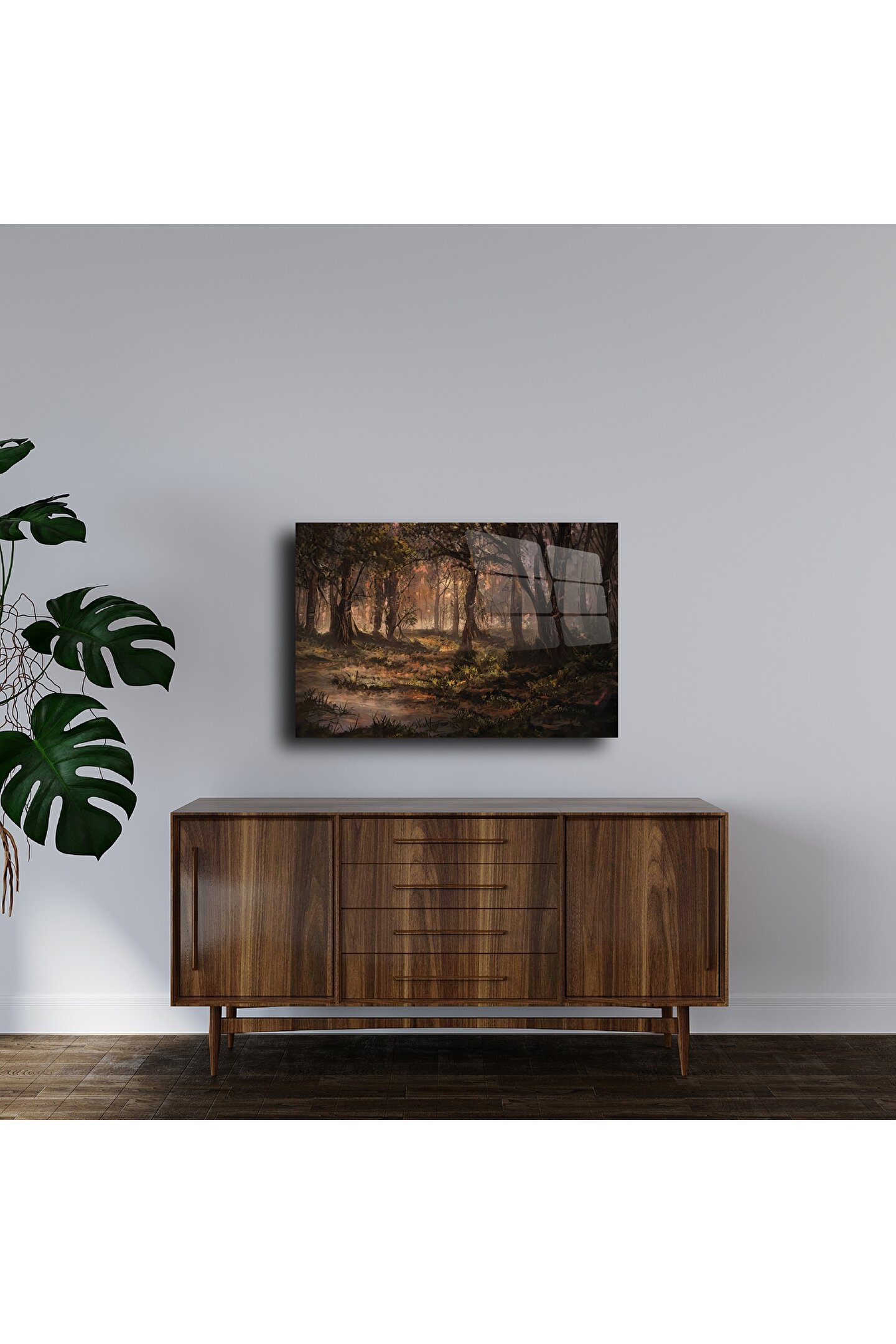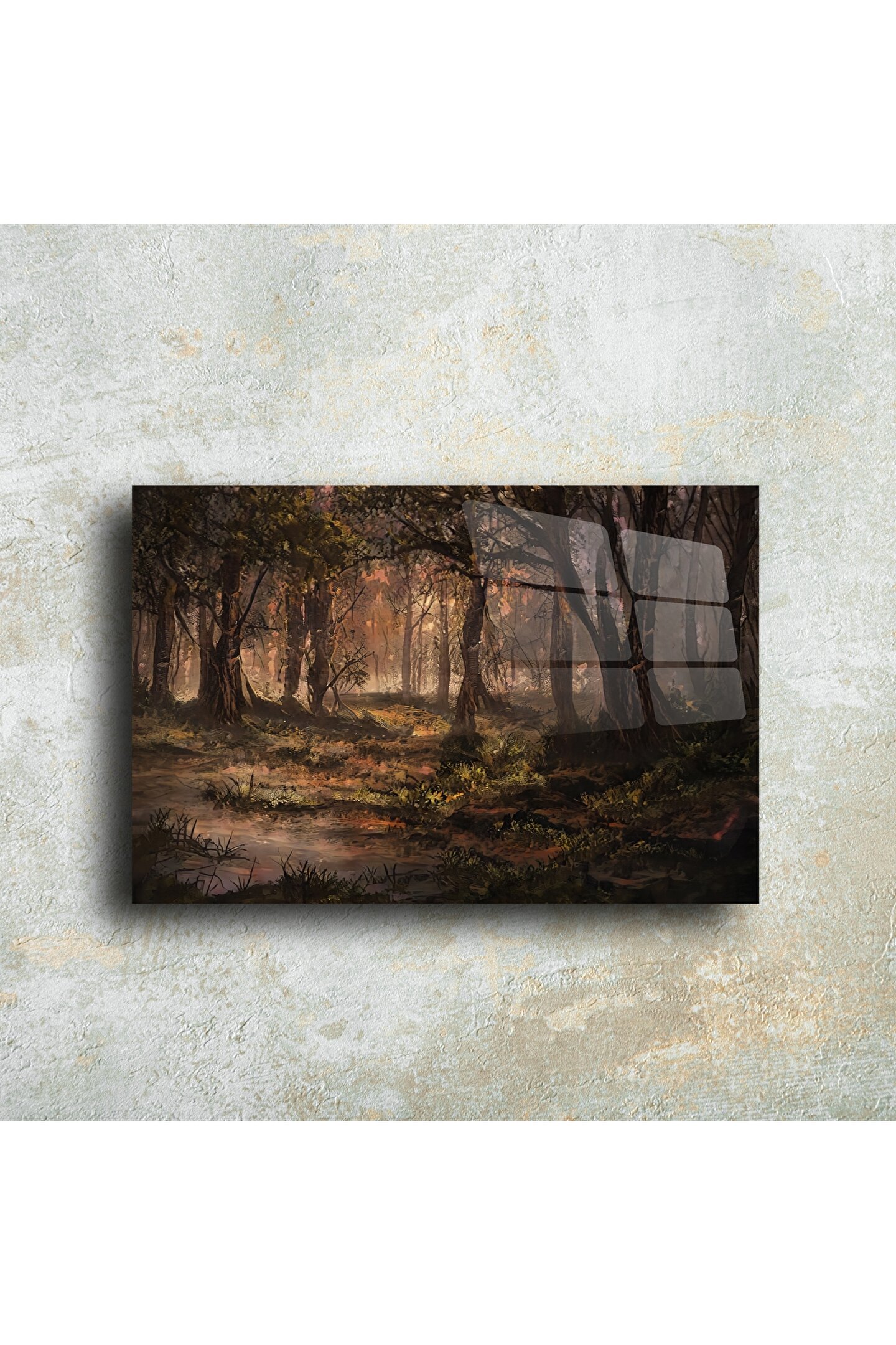 LEYLASER Cam Duvar Tablosu Doğa Temalı Orman Manzarası
