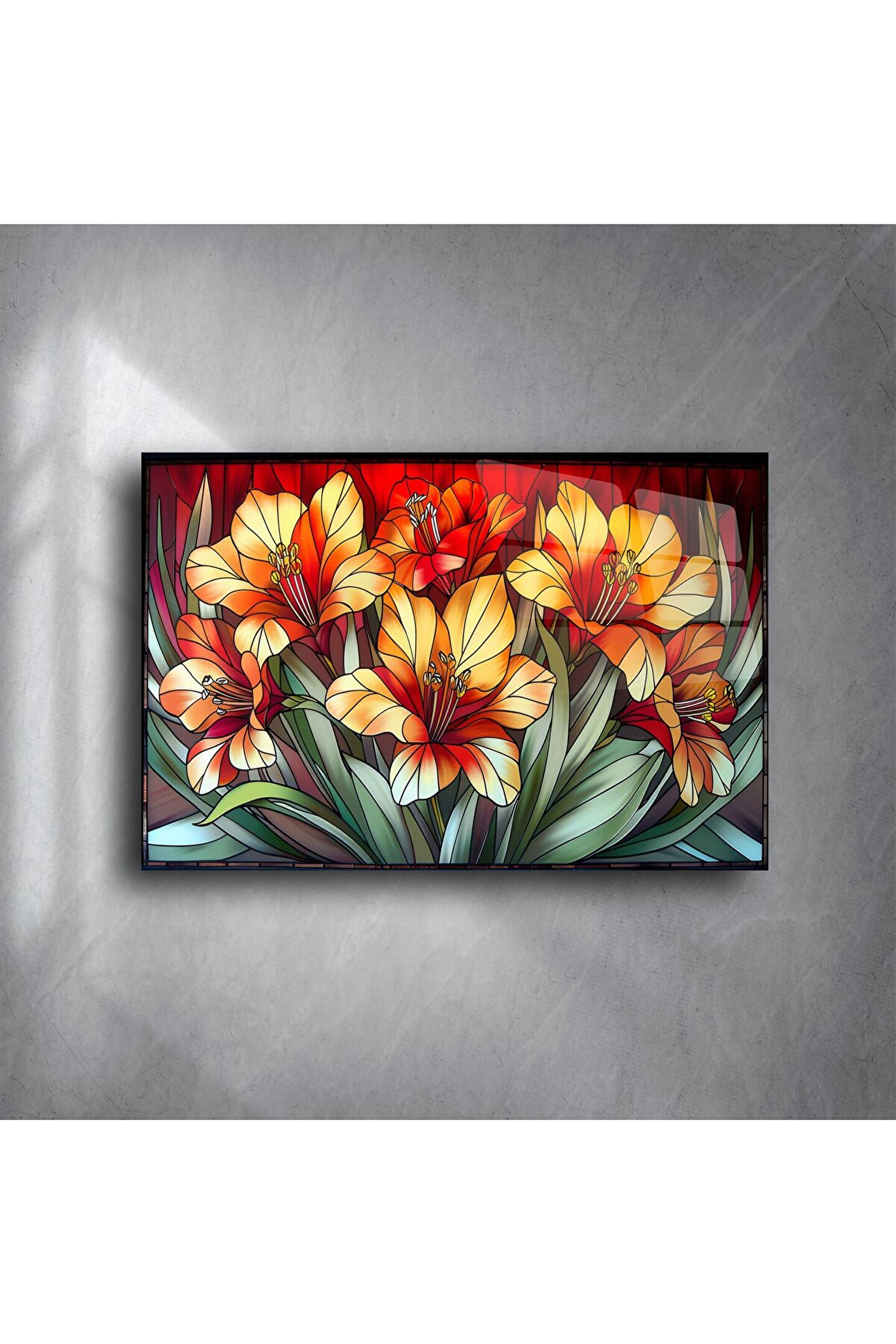 LEYLASER Cam Tablo Çiçek Desenli Duvar Sanatı